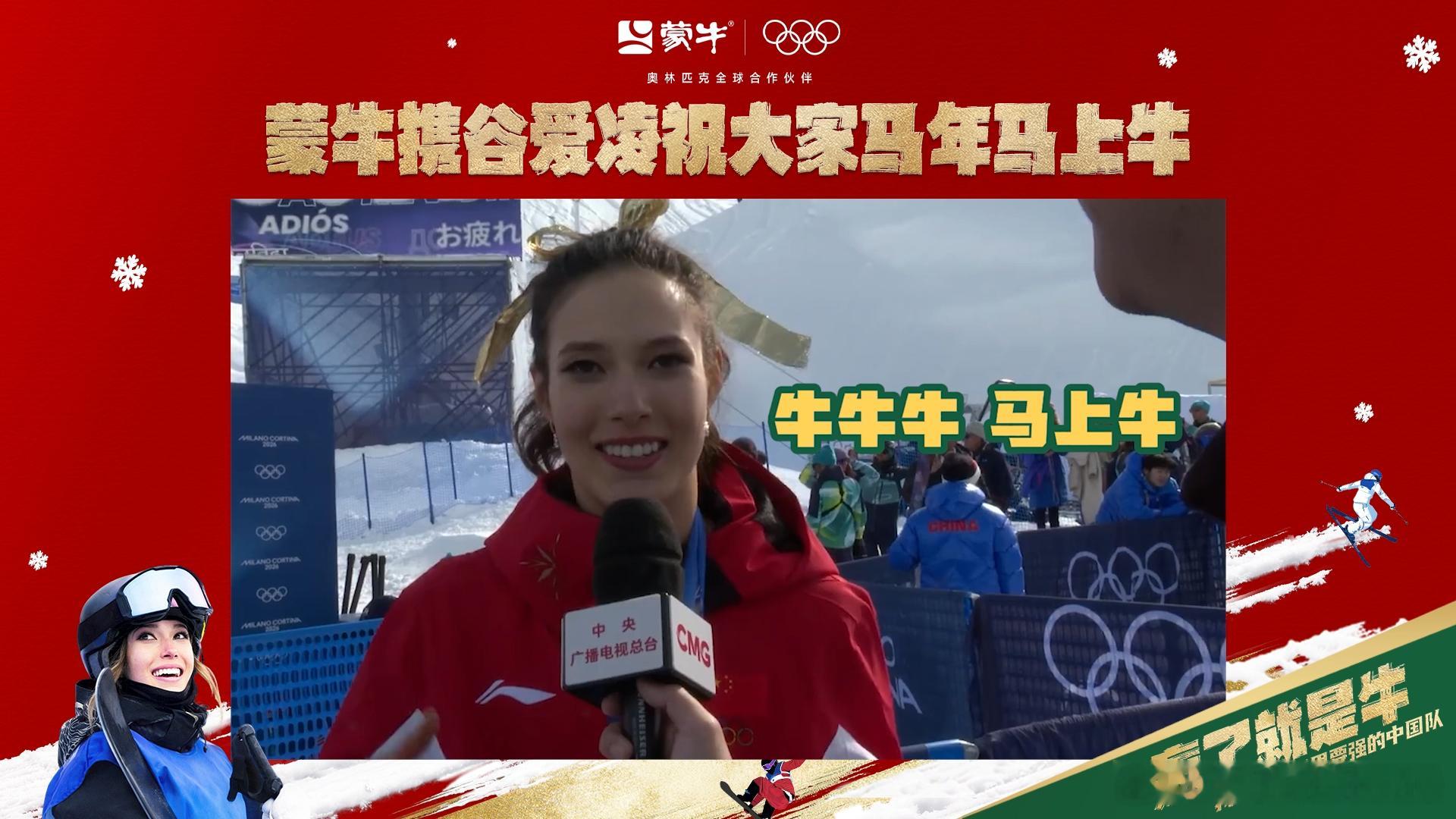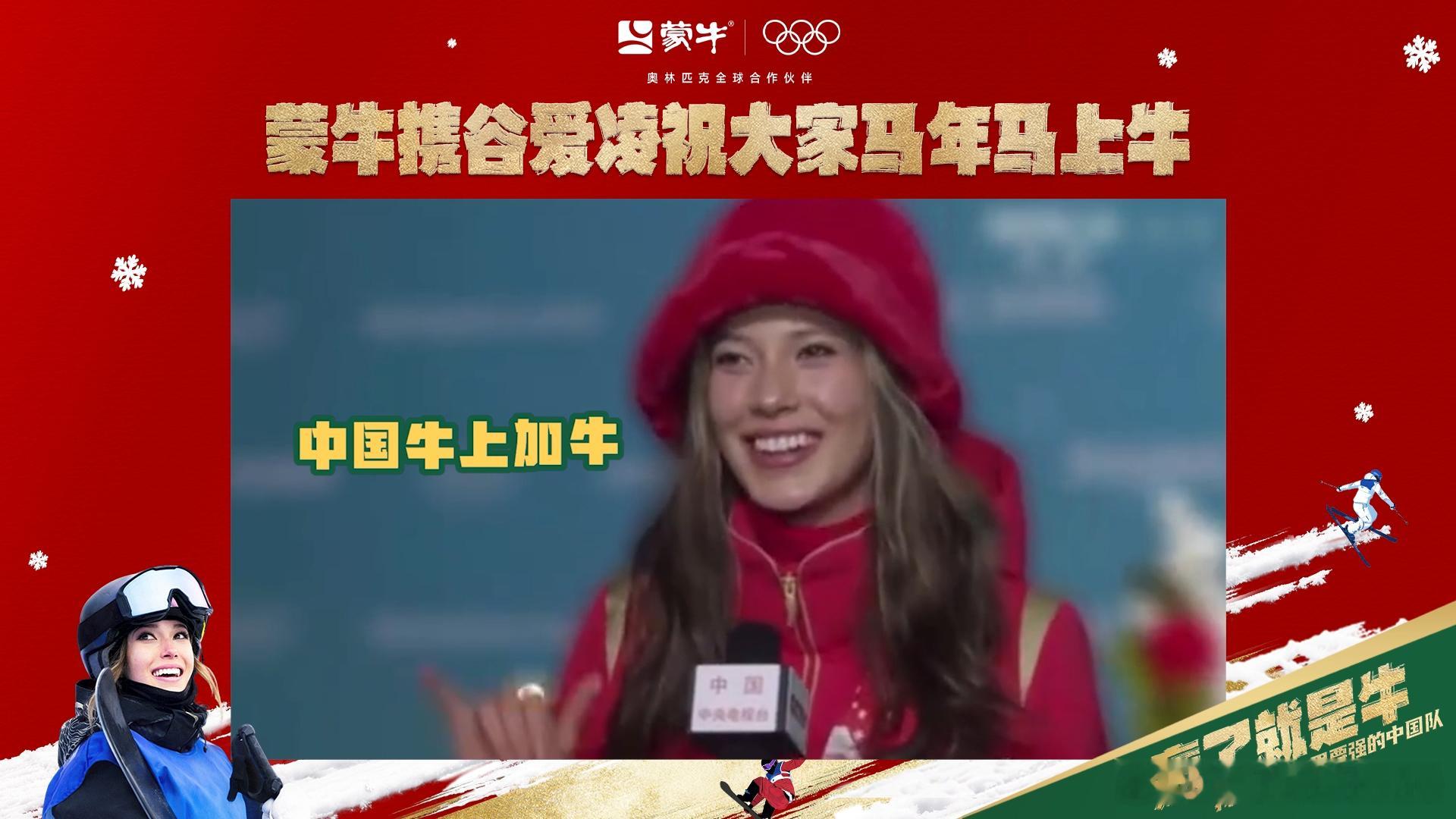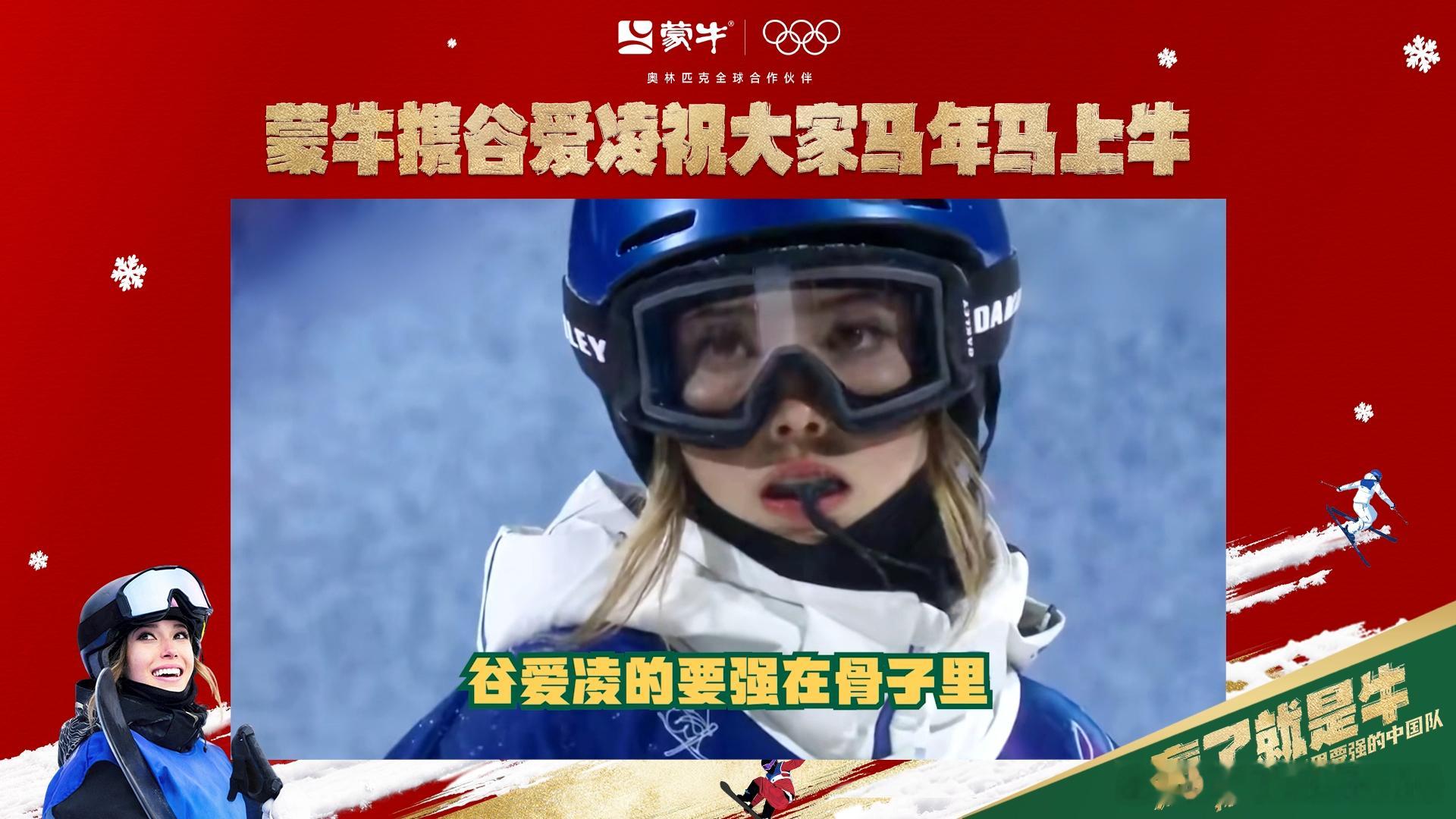 谷爱凌马上牛好灵谷爱凌夺金时刻,蒙牛要强精神燃爆全场!要强的人自带光芒,爱凌这波操作真是“牛气冲天”!蒙牛携谷爱凌给大家拜年啦——祝大家牛年牛牛牛,马上牛!身体倍儿牛,事业马上牛,好运马上来!新的一年,咱们一起要强到底,接住这波牛气,马上牛!
