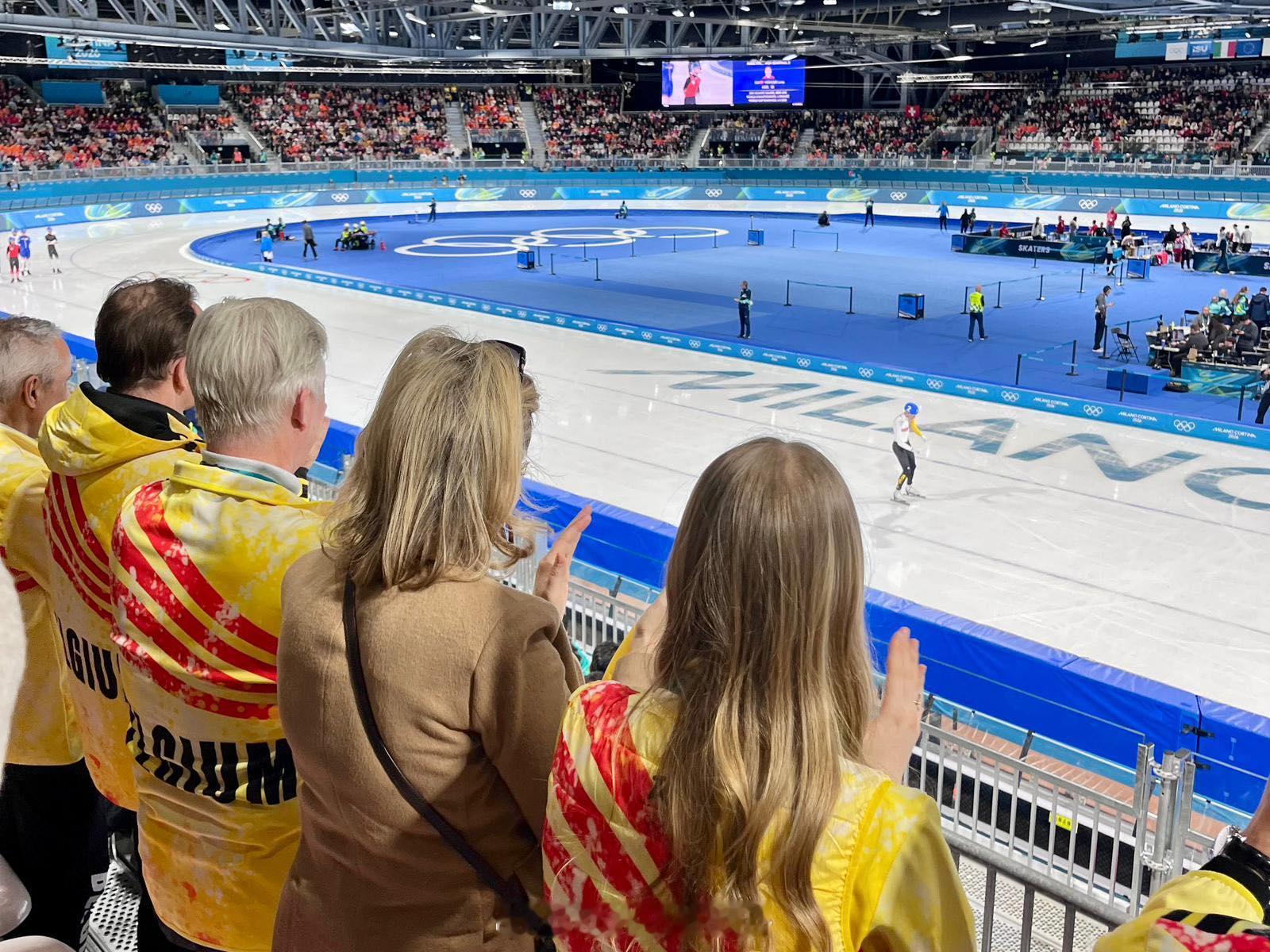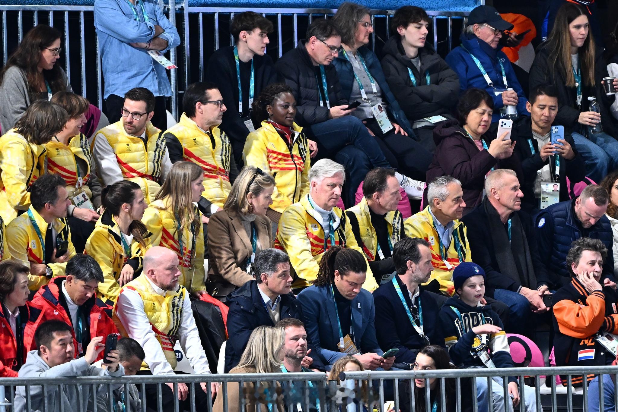 2.21比利时国王菲利普、王后玛蒂尔德和小女儿埃莉诺在冬奥会,看了速度滑冰