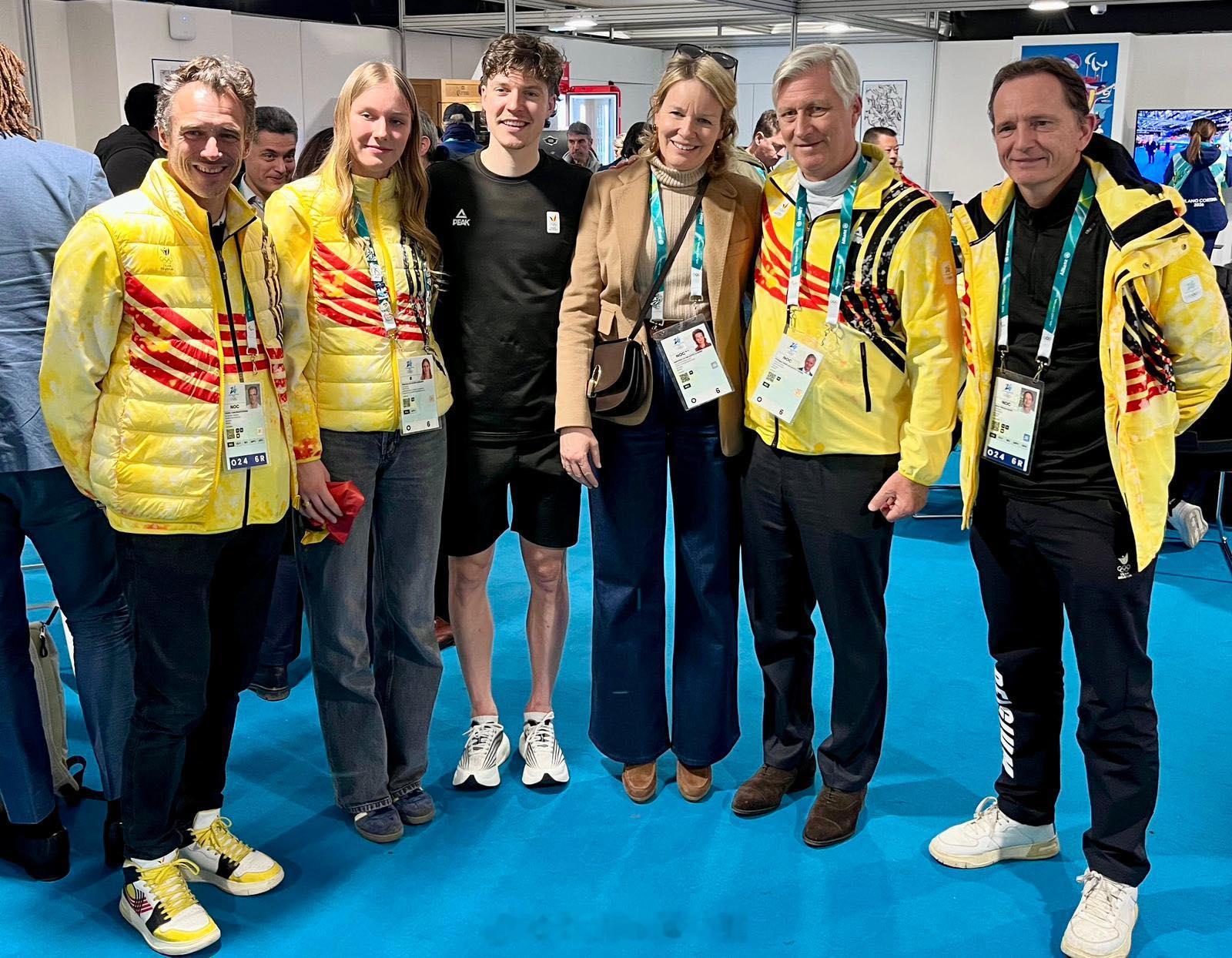 2.20 比利时国王菲利普、王后玛蒂尔德和小女儿埃莉诺去冬奥村与运动员寒暄互动玛