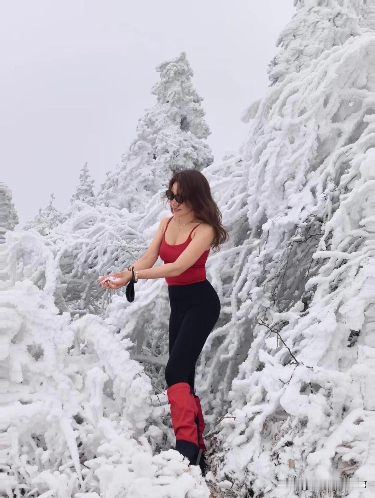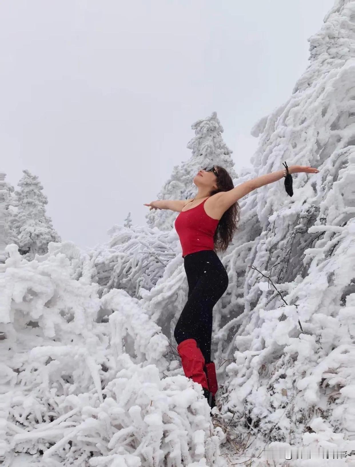 关女为了拍个与众不同的雪景照片,确实是置寒冷于度外,看着很冷实际也冰天雪地,真不简单。