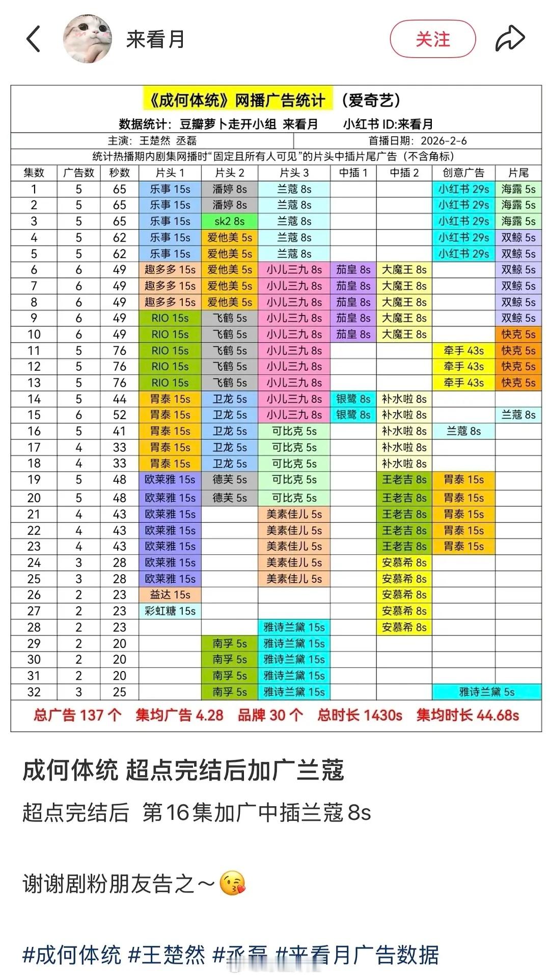 王楚然《成何体统》超点后加广了 广告商真金白银的认可