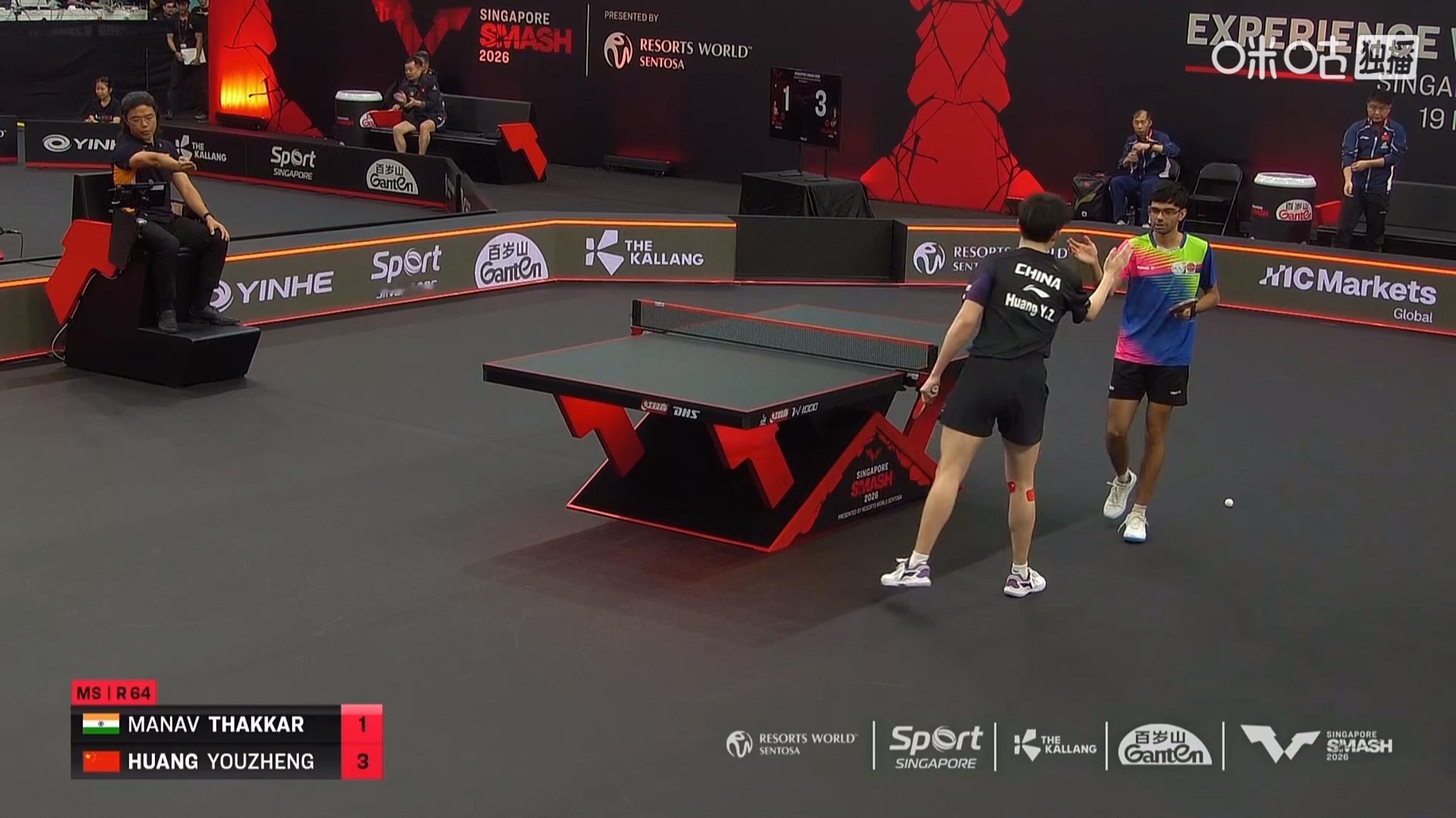 黄友政3比1塔卡(11-8,9-11,11-6,11-3)晋级WTT新加坡大满贯2026 男单第二轮
