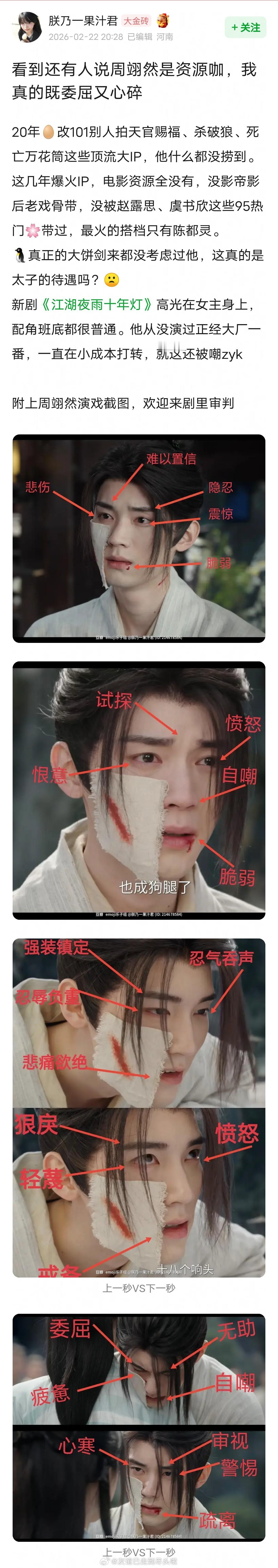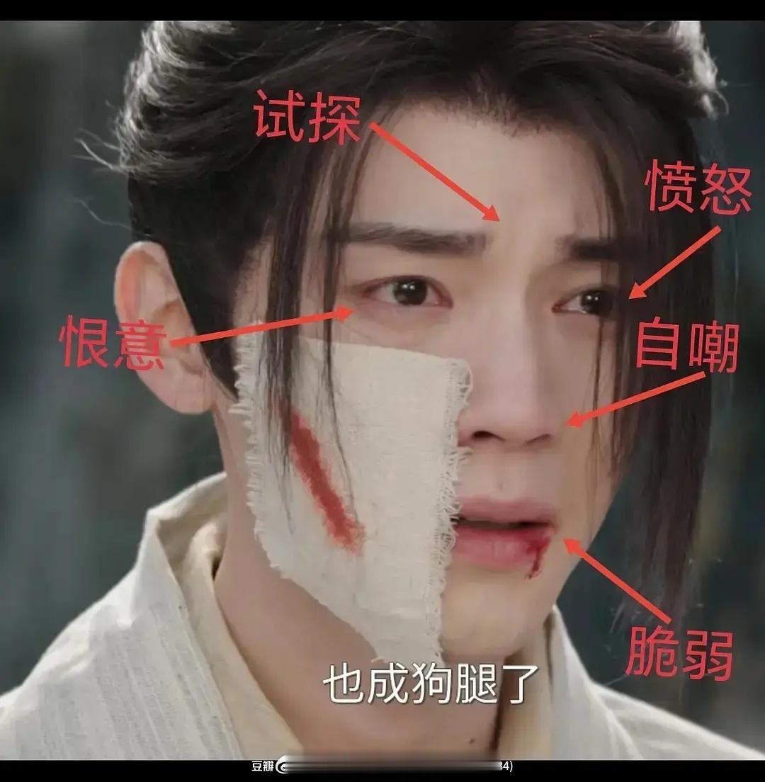 周翊然演技截图,一个演员的表情居然需要通过这些文字解说来告诉观众吗?江湖夜雨十年