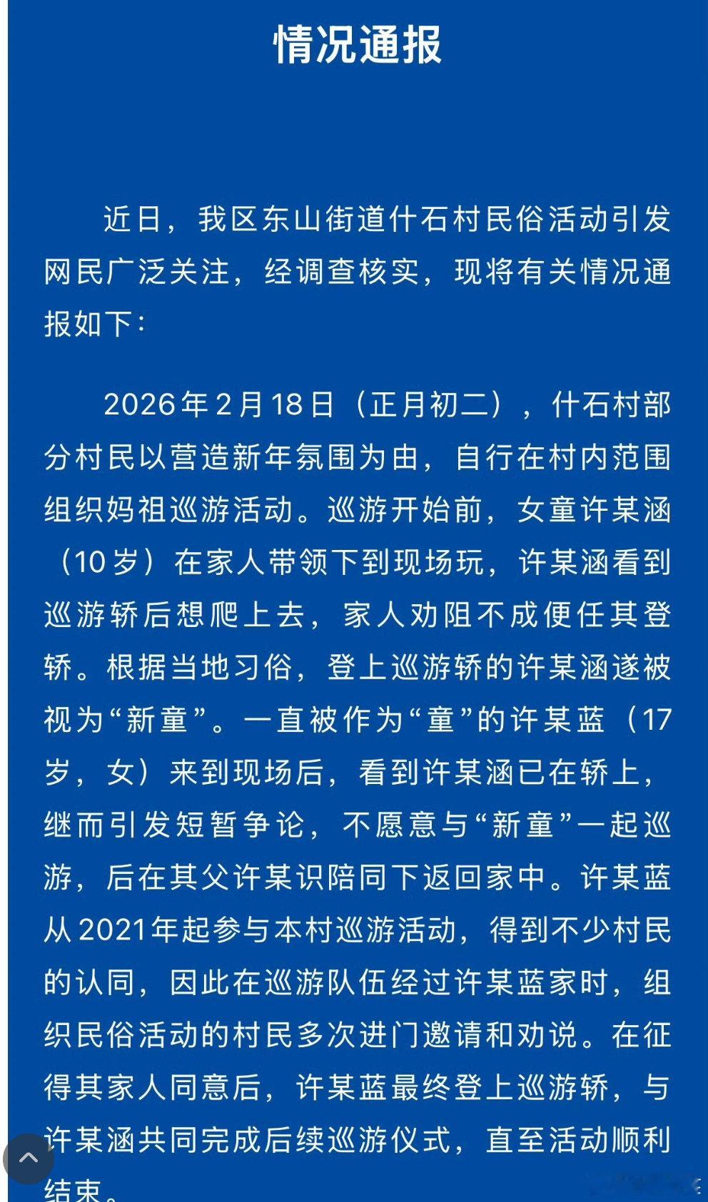 妈祖事件 红腰带湛江妈祖巡游“换童”风波真相公布,官方通报逐一澄清谣言。网传说法均不属实,本次活动由230户村民自发筹资5万余元,无外部资本介入;涉事孩童为10岁女童,来自普通务工家庭,家中仅捐款200元,并非网传特权安排。事件起因是女童好奇登轿,原定童女略有情绪后经劝说归队,两人共同完成巡游。所谓“掷圣杯”“轿子抬不动”等情节均为不实信息。公众关注的红腰带等细节争议,多为视角差异与解读偏差,并非刻意安排。这场由小插曲引发的舆论风波提醒我们,传统民俗承载乡情与信仰,网络传播更需理性审慎。以官方信息为准,不造谣、不信谣、不传谣,共同守护清朗空间与非遗文化的健康传承。妈祖事件 红腰带