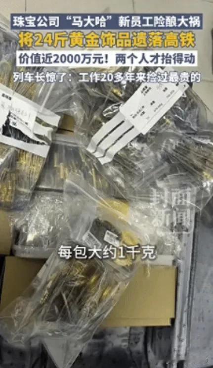人怎么能闯这么大祸!1月26日,上海列车长检查高铁车厢时,在卧铺下方发现被遗留黑色行李箱,而且行李箱一个人根本提不动,没想到打开一看里面竟是摆放整齐的黄金饰品,足足有十二包,总共是十二公斤,加在一起价值接近两千万。 早上7点多,D914次列车抵达上海站,乘客们陆续下车后,列车长像往常一样对车厢进行例行检查。巡查至6号车厢27号铺位时,她留意到铺位下方有一个无人认领的黑色行李箱,伸手去提时才发现箱体格外沉重,单靠一人无法搬动。按照铁路作业规范,列车长立刻联系乘警到场,全程开启记录设备,共同开箱查看。 开箱后的景象让在场人员颇为意外,箱内没有衣物与日用品,只有用防震材料包裹整齐的黄金饰品,一共十二包,每包约一公斤,称重后总计十二公斤,按照当时市场价格计算,这批财物价值接近两千万元。面对数额巨大的贵重物品,工作人员第一时间做好登记封存,同时通过12306工单、车站广播等渠道加急寻找失主。 很快,焦急的失主主动联系铁路部门。原来失主是珠宝公司的工作人员,此行是携带黄金展品前往上海参展,因随行新员工下车时匆忙疏忽,不慎将最重要的一箱展品遗落在车上。得知黄金被找到,失主悬着的心终于放下,也为自己的疏忽感到后怕。 在严格核对身份信息、行李特征与物品明细后,铁路工作人员快速完成交接手续,从发现财物到完璧归赵,全程仅用一小时,没有耽误失主当天的展会布展安排。失主对列车工作人员认真负责、高效处置的工作态度连连致谢。 这一事件也给出行的人们提了醒,在客流密集的出行场景中,下车前务必仔细检查铺位下、行李架等容易遗漏的位置,妥善保管好贵重物品,避免因一时大意造成财产损失。 各位读者你们怎么看?欢迎在评论区讨论。