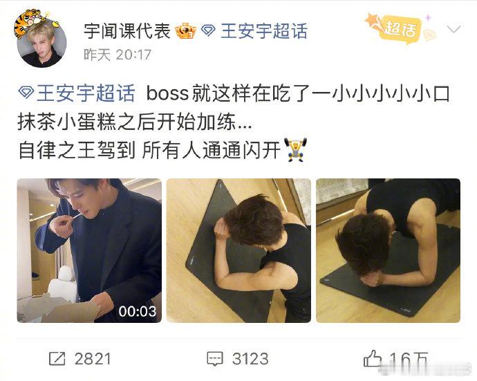 王安宇吃完蛋糕开始加练 王安宇手臂肌肉线条 一口蛋糕换一组加练,这波操作属实被秀到了!前一秒还在享受甜食快乐,后一秒就紧急开练。王安宇用实际行动证明:什么叫“吃最少的甜,秀最野的肌肉”。这手臂线条是真实存在的吗?