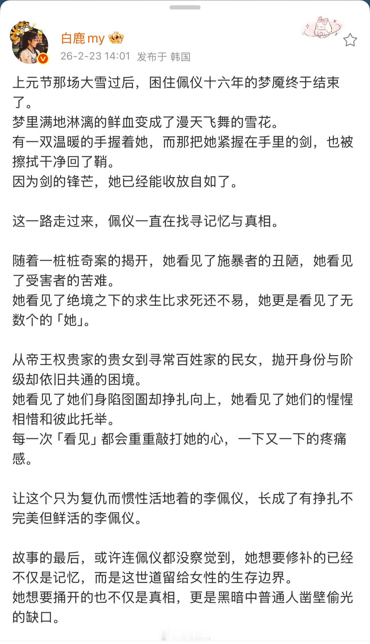 白鹿说李佩仪自由啦白鹿告别唐宫奇案长文白鹿长文告别《唐宫奇案》🥹舍不得我们李佩仪💧