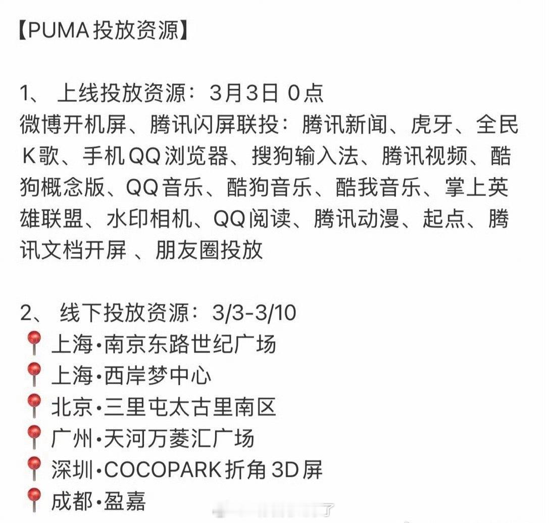 张凌赫新商务puma的官宣节奏,线上线下的投放资源很好哎!