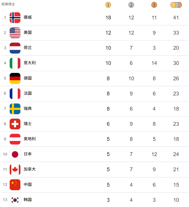 这次,美国在16个分项中的12个项目中收获奖牌,其中在6个分项中收获金牌,共计12金12银9铜。总奖牌数定格在33枚,是代表团历史第三好成绩,仅次于2010年温哥华的37枚和2002年盐湖城的34枚。同时,美国的金牌数和奖牌数在米兰-科尔蒂纳冬奥会上都仅次于挪威,排名第二。冬奥会此刻皆不凡