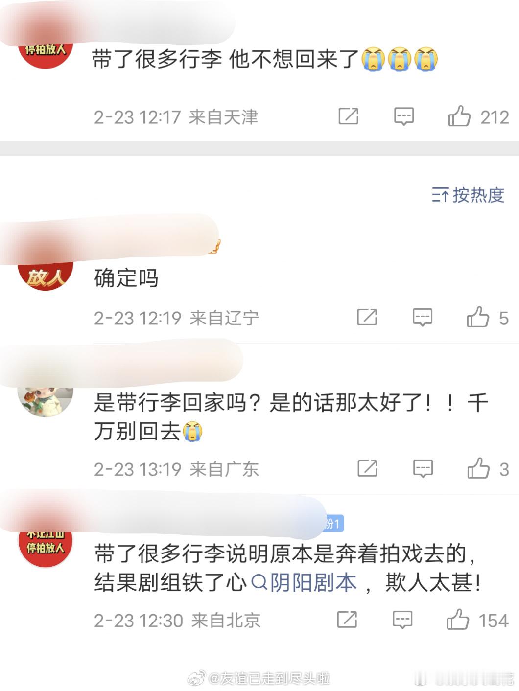 杨洋带着行李箱离开剧组杨洋带着行李箱离开不让江山剧组 不让江山 昨天开机 今天主演杨洋带了一堆行李箱离开。有粉丝称是请假养病,但也有粉丝称剧组搞阴阳剧本,不演了杨洋站第二排翟子路站第一排