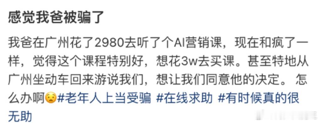 刷到AI中老年骗局新闻,真的又好笑又心疼😭 2026 AI元年、走进平民化,可最先盯上老人的不是便民AI,是骗子!好多老人抱着手机学“AI致富课”,张口就是专业词,转头就想交几千报班,信“0学费、月入过万”,劝都劝不动。说白了就是换皮骗局!借AI东风收割老人退休金,披着科技外衣更隐蔽。看着老人认真的样子又好笑又心疼,你们身边有这种被骗的吗?一定要给老人们提前普及,不要让骗子得手!