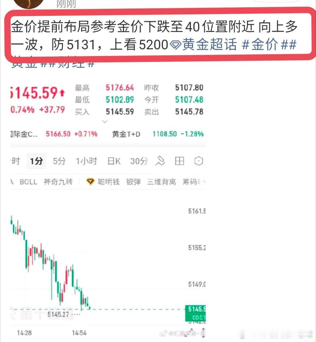 金价提前布局参考金价下跌至40位置附近 向上多一波,防5131,上看5200黄金