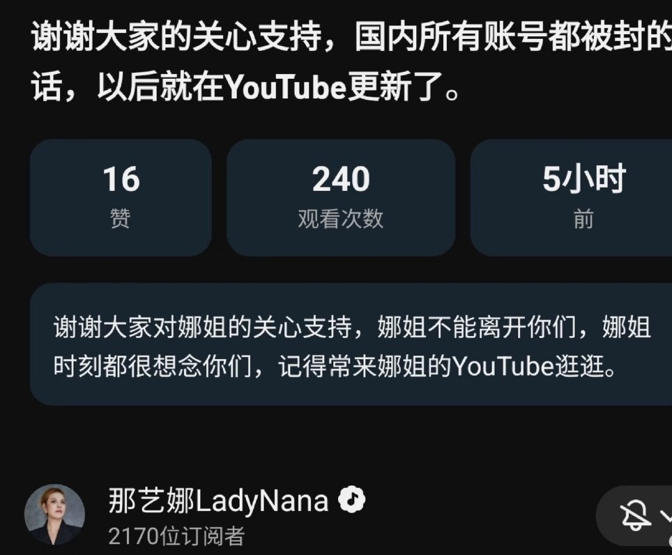 那艺娜开通外网账号那艺娜开通YouTube账号好无语......