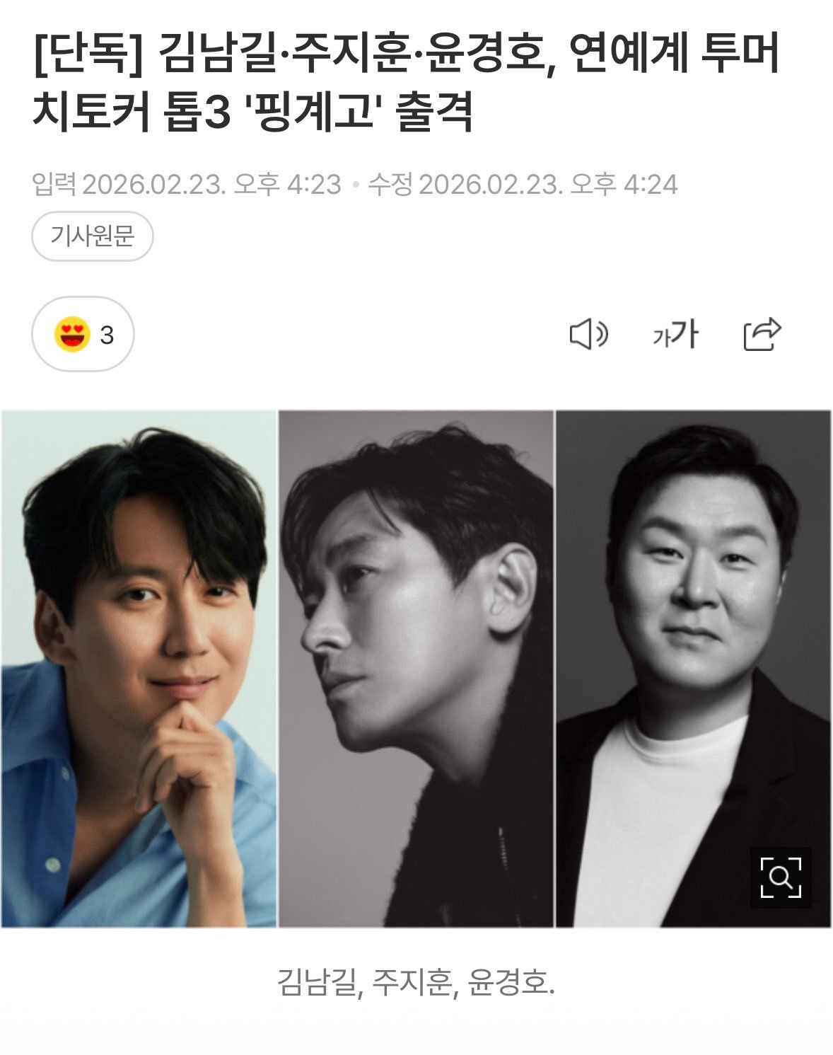 我不行了,演艺圈三大话唠金南佶x朱智勋x尹敬浩三人要一起出演<借口go>3月14