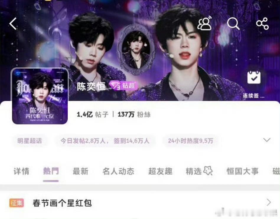 我去陈奕恒超话钻3达成据统计内娱目前只有16位艺人达成过超话钻3