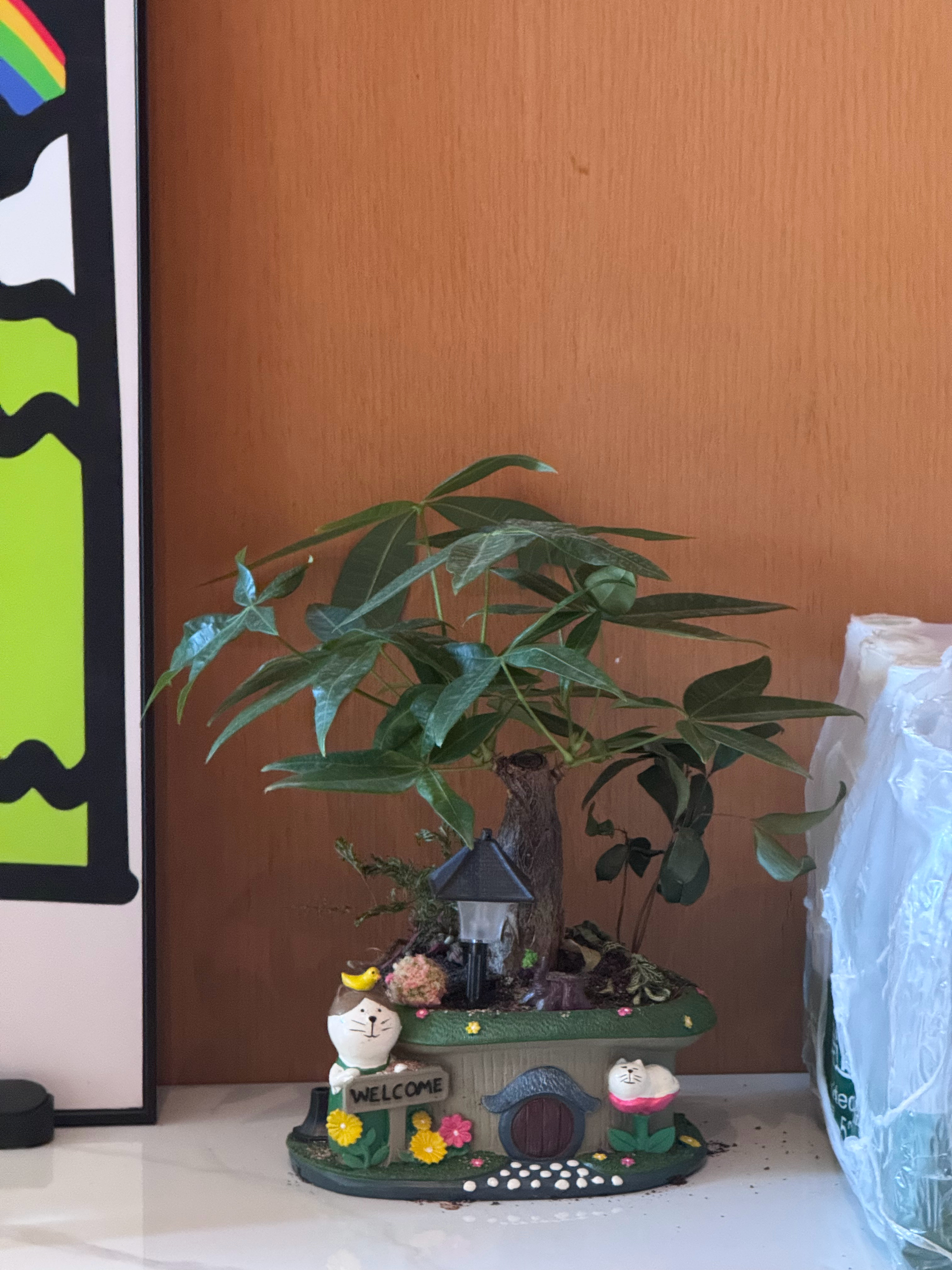 图三是门口鞋柜放了个小发财树,想起来了浇点水,目前问题不大