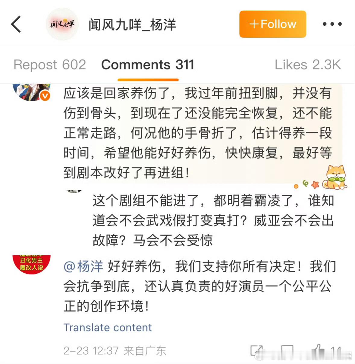 杨洋这是直接从江山剧组走了?是哪里受伤了?