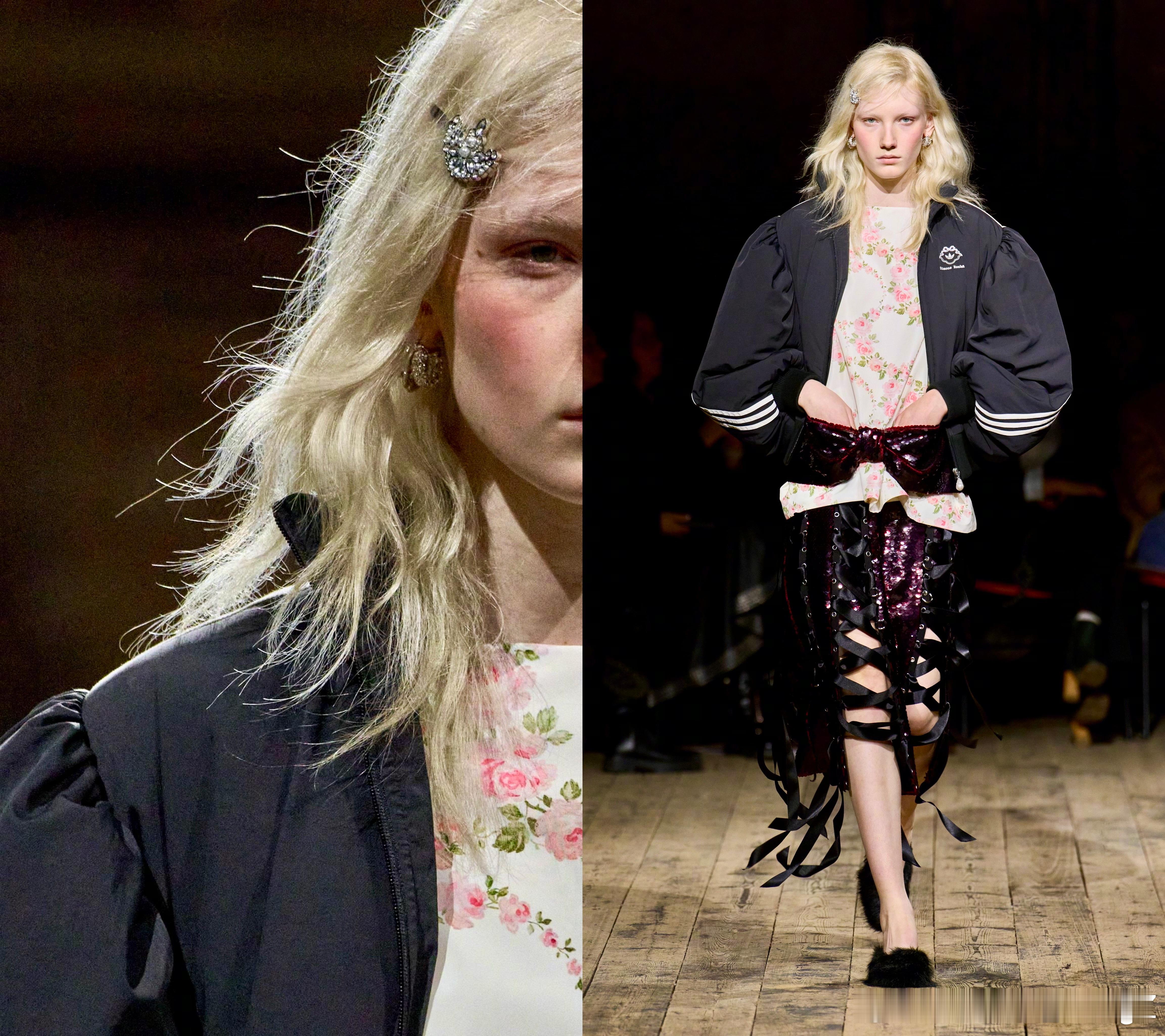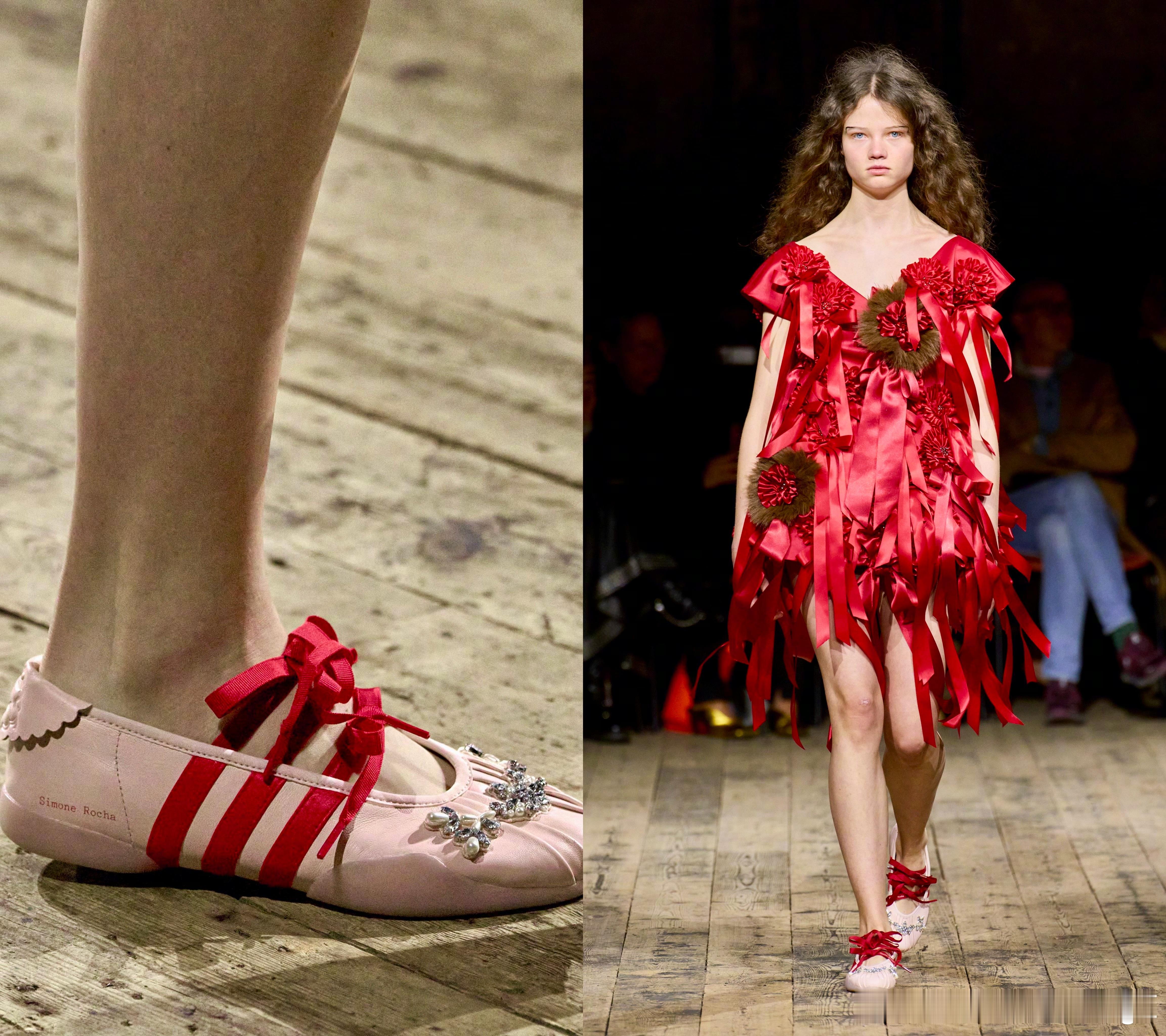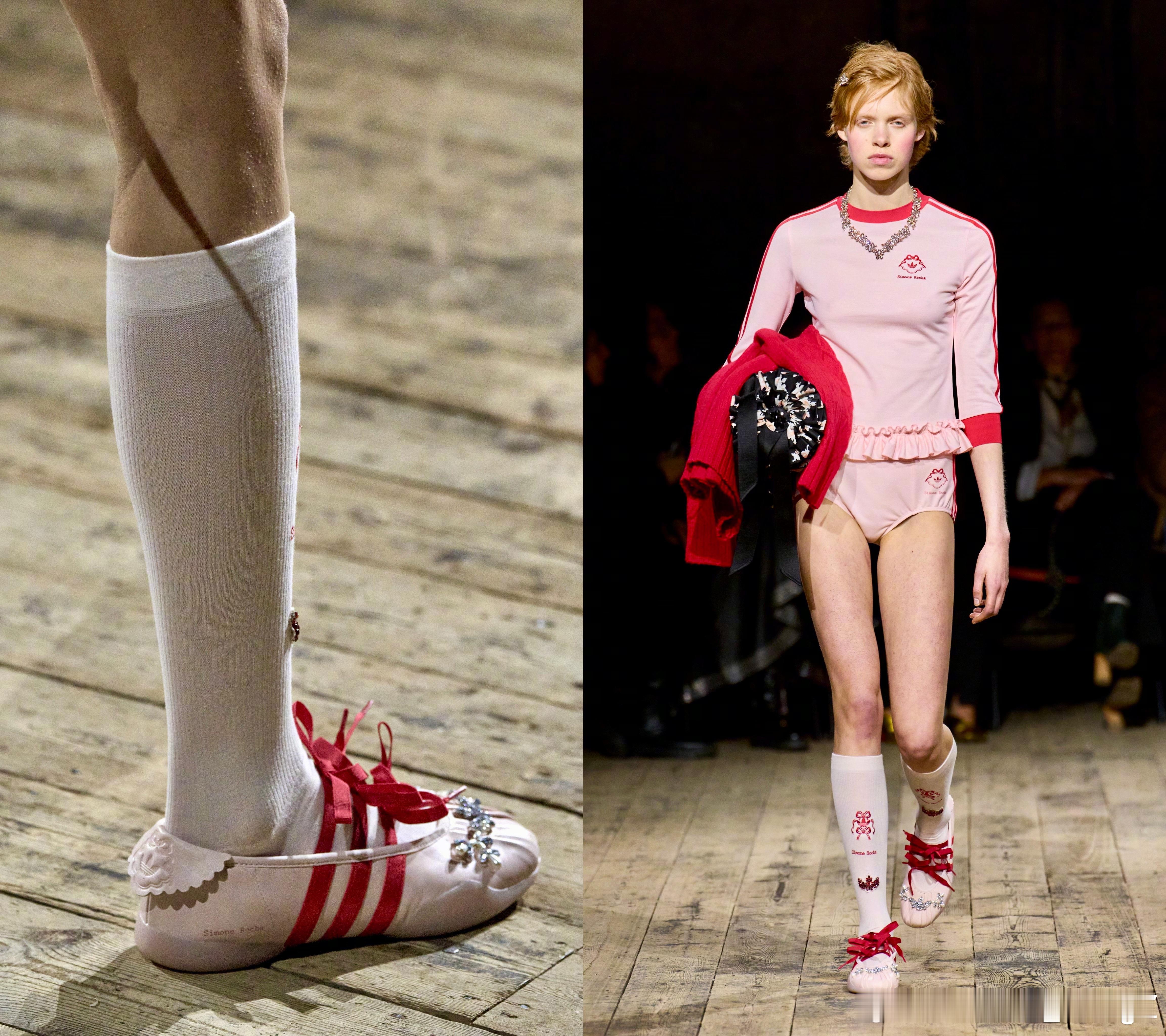 系列中最惹人注目的,当属 Simone Rocha 与 adidas Originals 推出的联名作品:经典三叶草标识被 Rocha 重构,搭配蕾丝、荷叶边与缎带花饰,将柔美浪漫与街头运动完美平衡。发卡、长袜、芭蕾舞鞋、红色蝴蝶结……极富个性与诚意的联名合作🎀