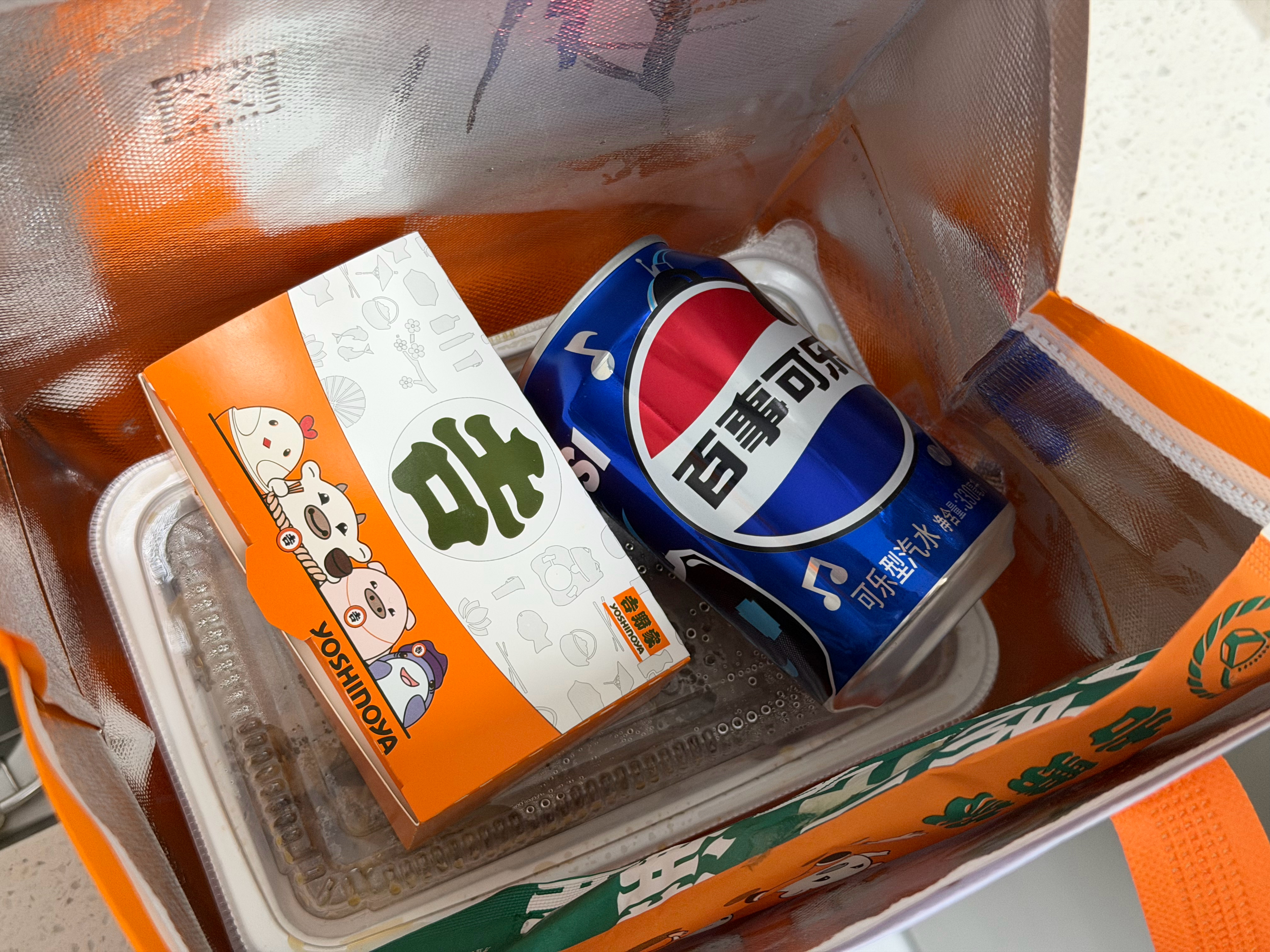 但这个包装是不是有点过于简陋了呢?单独多加的两块钱包装费换不来任何保温措施,每次送到手饭都是凉的。诸如味千拉面、豪客来等等外卖已经单独用保温袋装主食、甚至还给加热包了,吉野家这个体验属实是过于稀烂,到手四十块的牛肉饭包装宛如拼好饭。