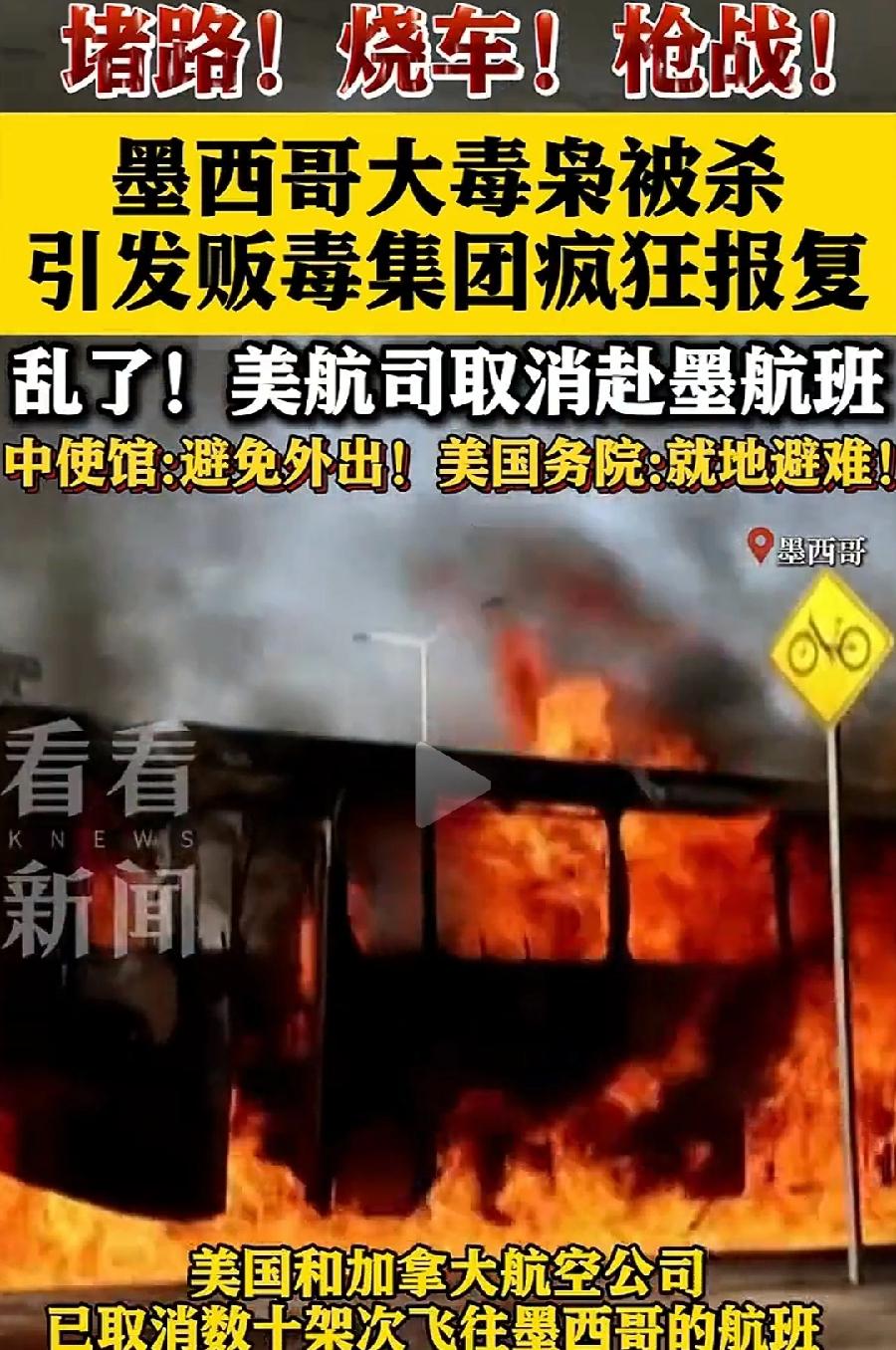 终于明白特朗普,为什么修建美墨边境墙,驱逐非法移民了!墨西哥太乱了!一个贩毒集团拿着枪,把全国搞得天翻地覆,堵路、纵火、烧车、枪战,简直无法无天!墨西哥政府,还有政府军,也很拉垮,根本靠不住,连贩毒集团这些散兵游勇的武装分子,都对付不了!墨西哥与美国相邻,发展天差地别,怪不得墨西哥人挤破头偷渡,也要往美国跑!