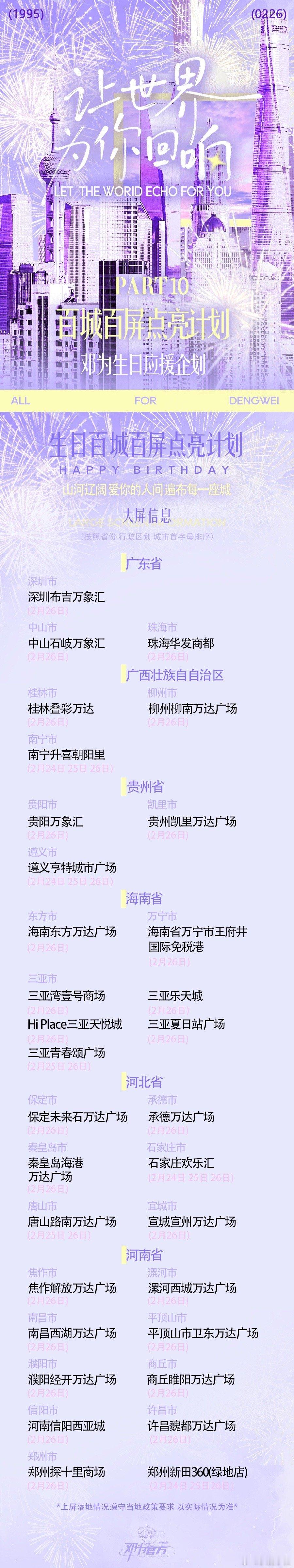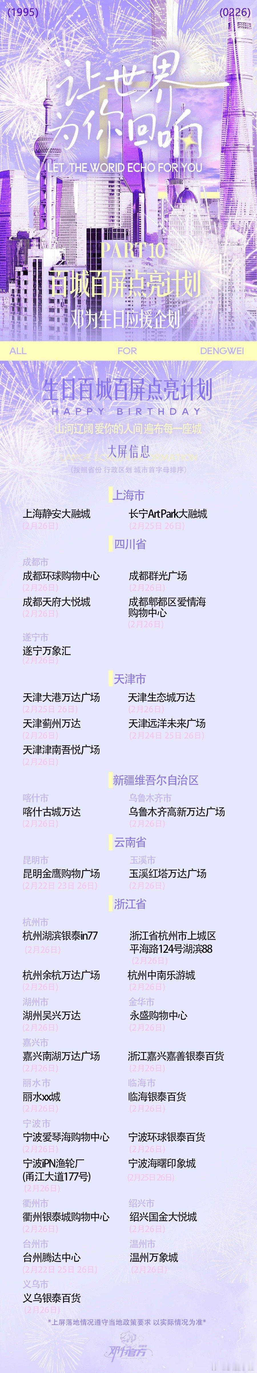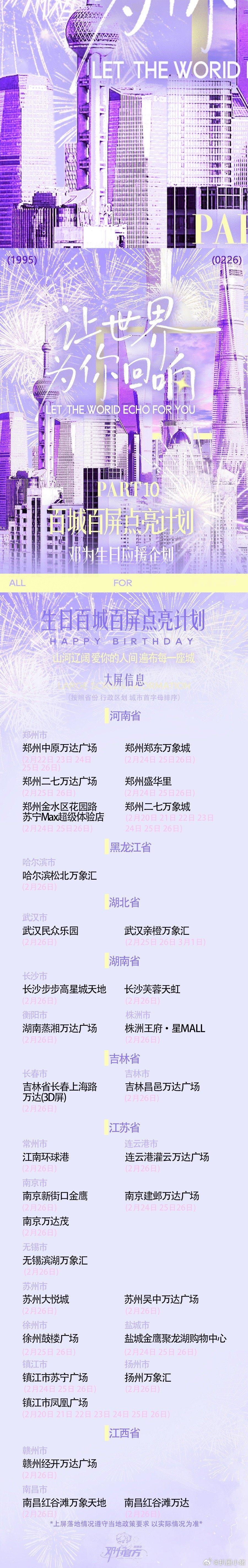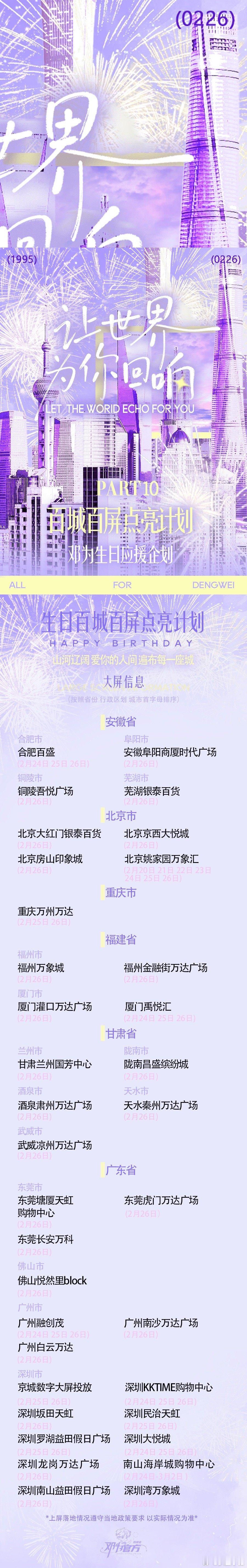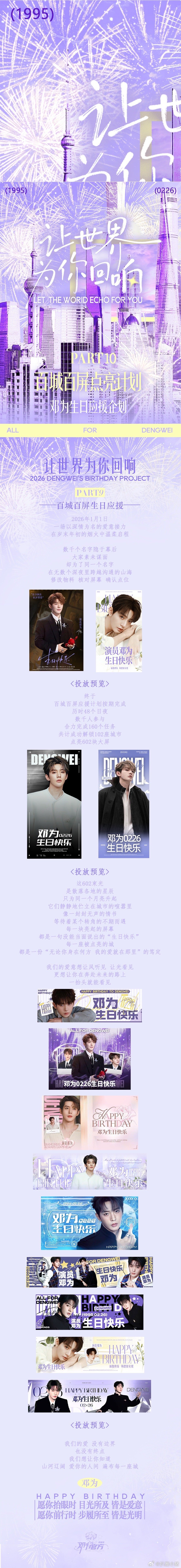 邓为生日粉丝大屏应援!102城602座大屏,是钻石对邓为的生日祝福!愿你前路坦荡,所愿皆实现邓为0226生日快乐