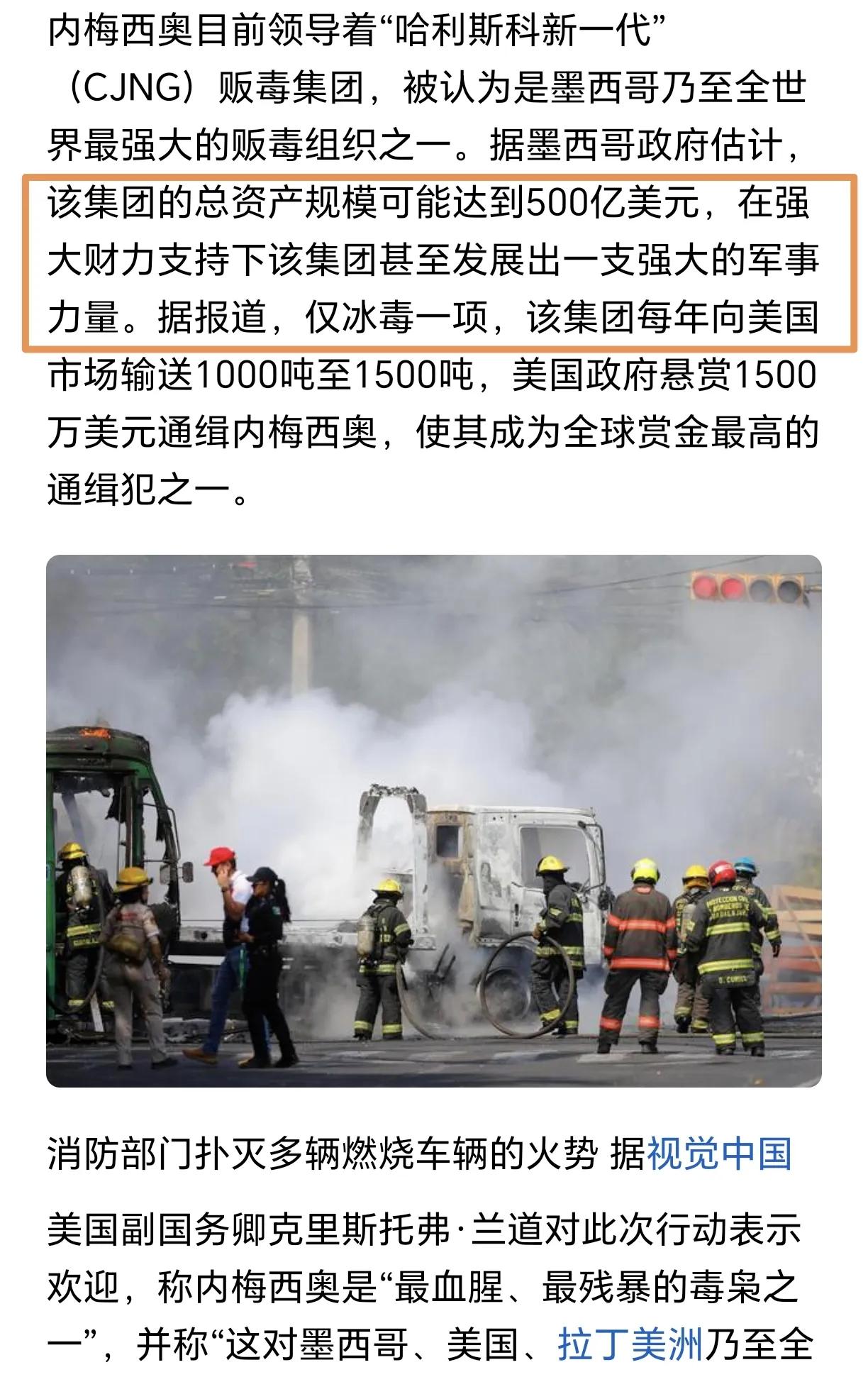 墨西哥最大毒枭死后,引发当地混乱。 国内很多人在网上诧异:就死了个毒枭,怎么就把一个现代国家弄得天下大乱了? 不是所有国家都有中国这样强大的政府。墨西哥是自有国情在此,离美国太近了,当地贩毒集团势力之大已经渗透进国家社会的方方面面,政府军警力量确实也打不过贩毒武装,贩毒集团在疫情期间甚至还维持社会秩序、减少人员聚集活动。 这次死的大毒枭内梅西奥,被公认为是墨西哥乃至世界上最大贩毒集团的首脑人物,贩毒集团仅正规资产规模就近500亿美元,武装力量极其强大。他一死,贩毒集团内战、黑道势力洗牌,社会秩序不可避免的受到影响。 墨西哥的例子说明,对于制毒贩毒行为的打击力度绝对不可以减轻、只能加强,否则对国家人民的危害是很大的。 墨西哥 南美毒枭 墨西哥未来 墨西哥毒贩