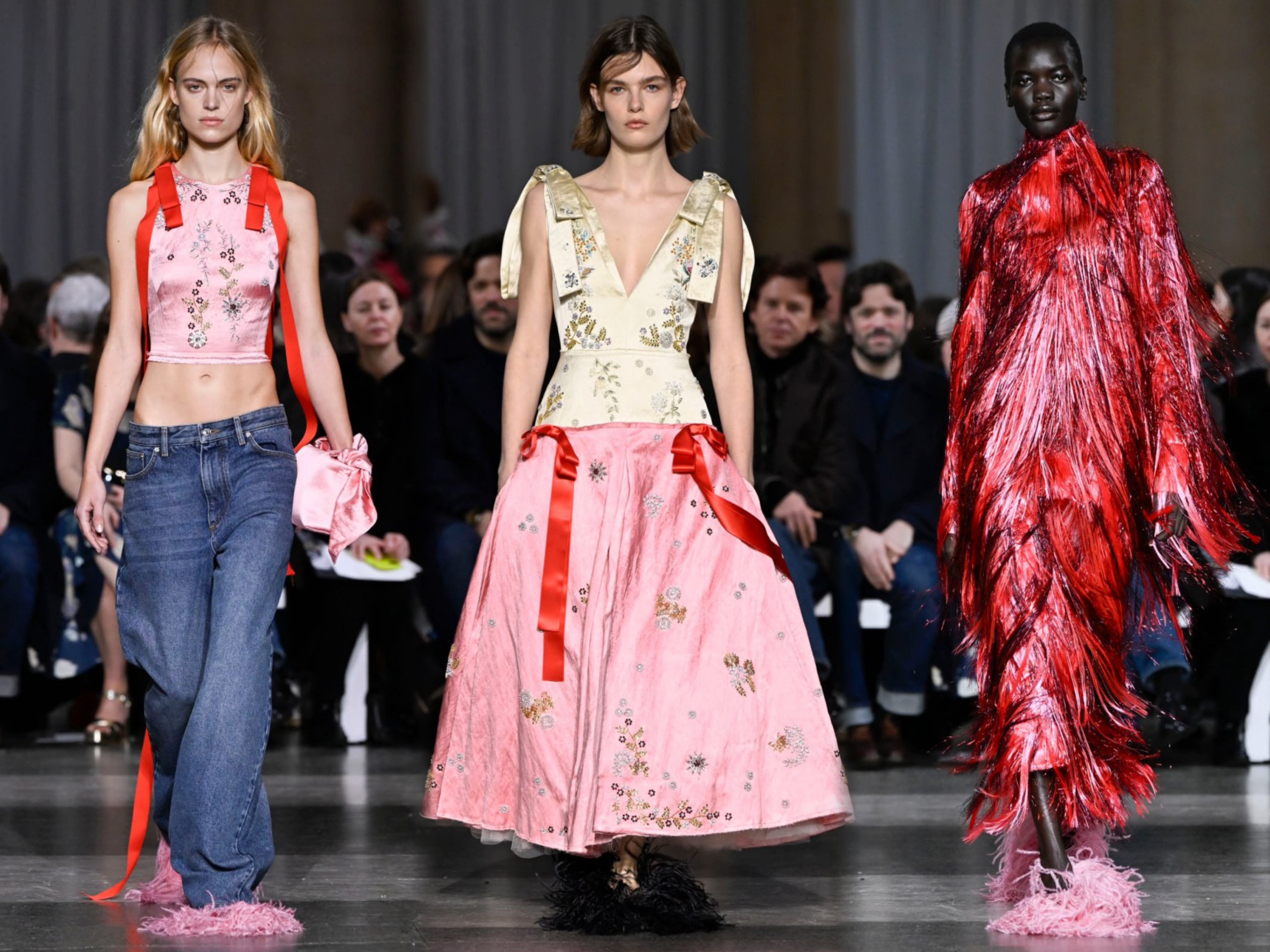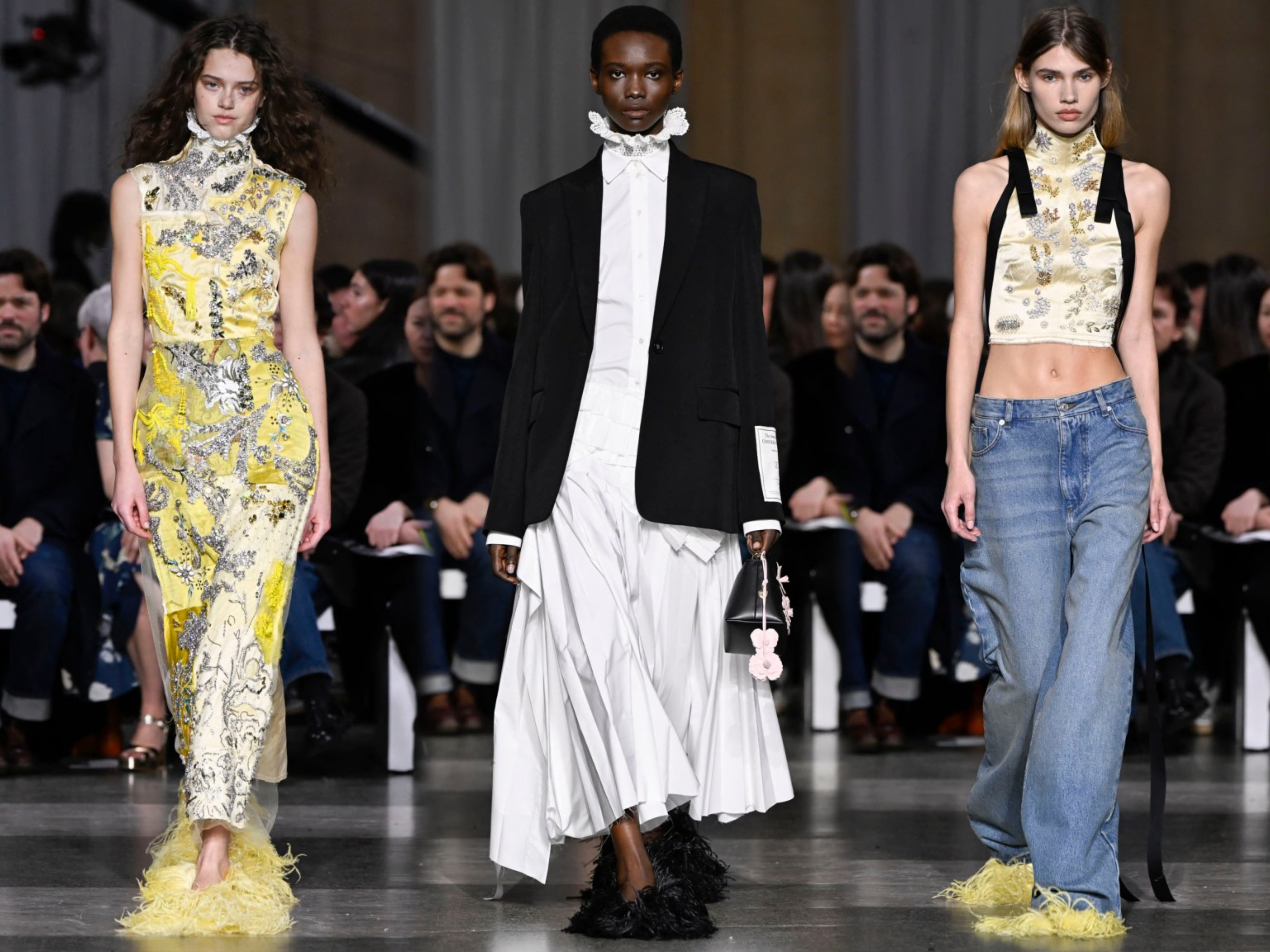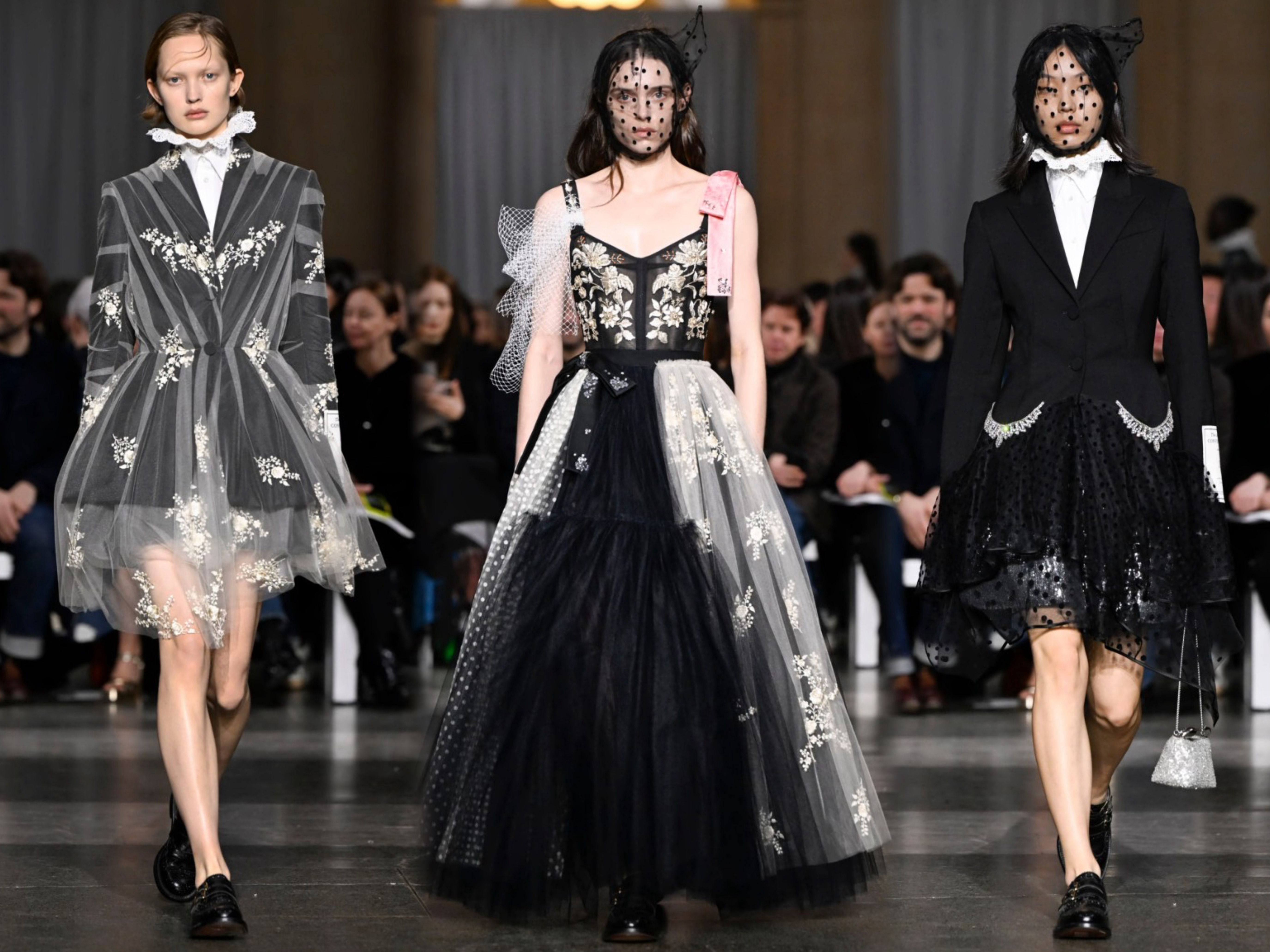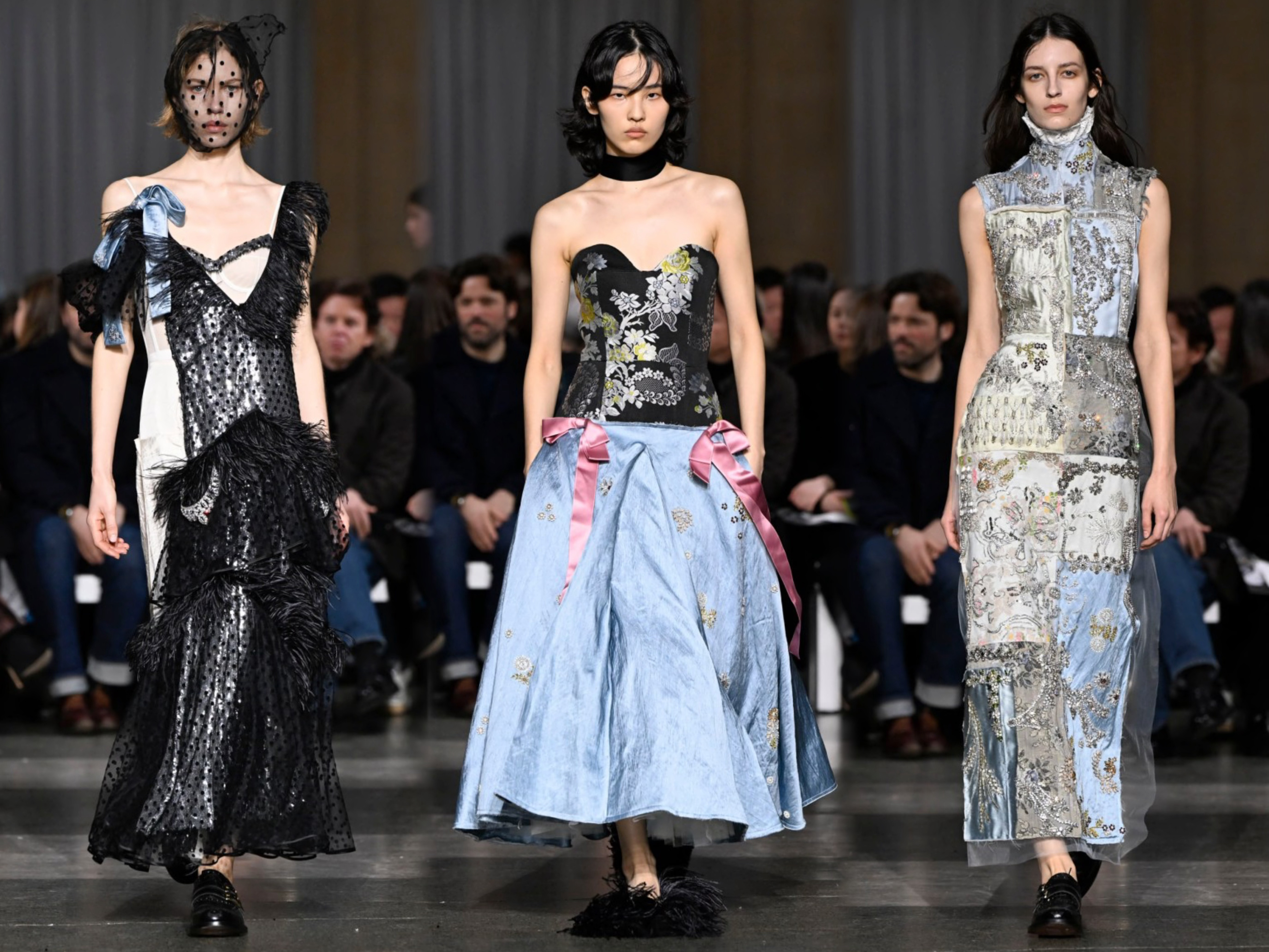 庆祝品牌创立二十周年,设计师Erdem Moralioglu以“Impossible Conversations”为主题于伦敦泰特不列颠美术馆呈现新季系列。拼接面料、摇曳流苏、水晶装饰… 极致繁复的工艺细节,致敬歌剧女神玛丽亚·卡拉斯、摄影大师弗朗西丝卡·伍德曼等缪斯。依旧是我们所熟悉的优雅英伦名媛。超模Edie Campbell 开场,Guinevere van Seenus 闭秀。时装周 大秀直击