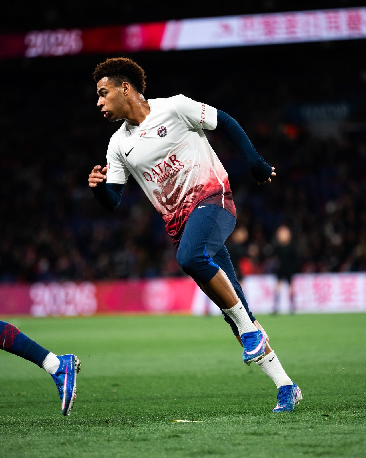 王嘉尔巴黎圣日尔曼联名球衣 又在巴黎放大招! 与联名球衣,以农历马年为切入点,红色视觉融合中国书法「马」字,让东方精神对话世界足球文化。渐变设计透过红白过渡呈现动态能量,呼应赛场上的节奏转换。PSG球员全员上身,这个王嘉尔马年开局就是王炸!