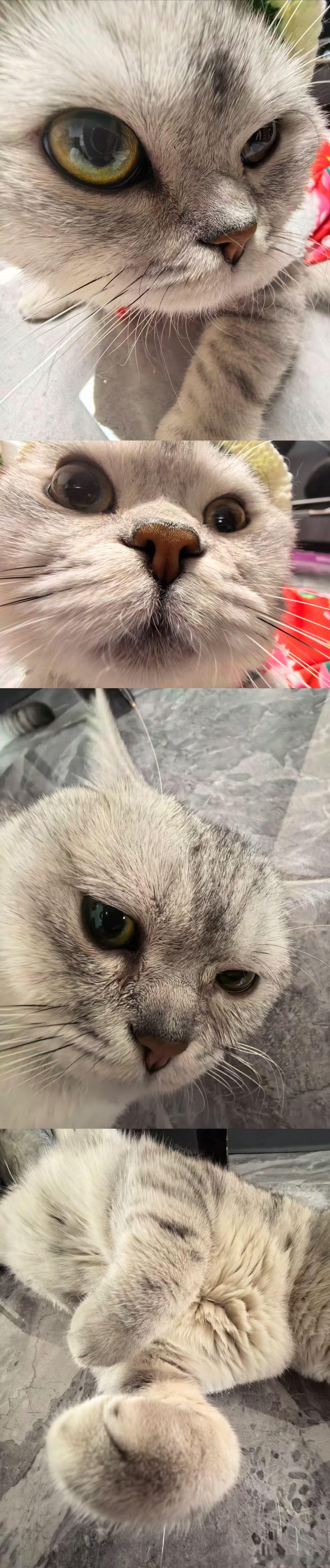张泽禹拍的复制粘贴 张泽禹拍猫也太执着了,角度姿势全是复制粘贴,小猫被养得圆圆润润,毛发顺滑,一看就是被好好对待的小宝贝。