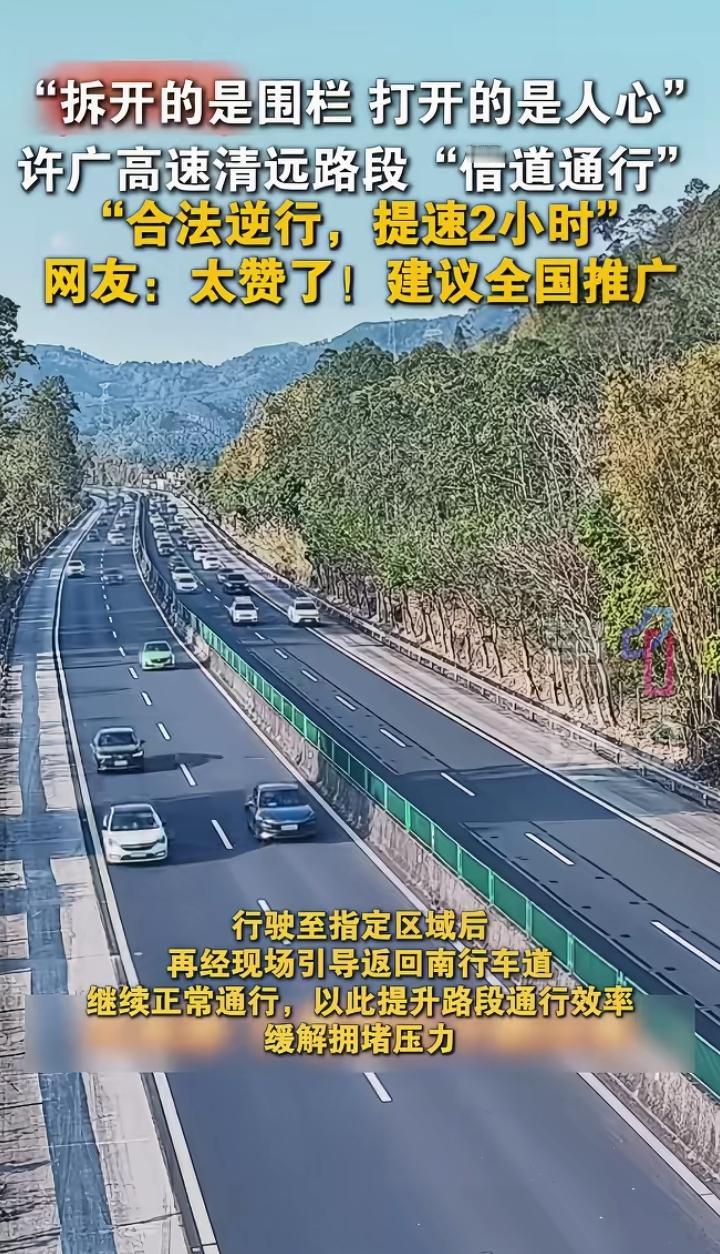 许广高速清远段这波操作,暖到了无数归乡人。 建议全国推广!许广高速清远段的“潮汐隧道”,治好了我的春运焦虑。 作为南下瓶颈,六甲洞隧道常年拥堵。今年,交警创新推出长距离借道通行,盘活对向闲置车道,让堵点秒变通途。 这不仅是一次交通管控的升级,更是治理思维的转变——从被动疏堵到主动引流。 警车带路、空地联动,专业与温度并存。为清远交警点赞,愿这样的“智慧春运”早日铺满每一条回家路! 春运 春运返程