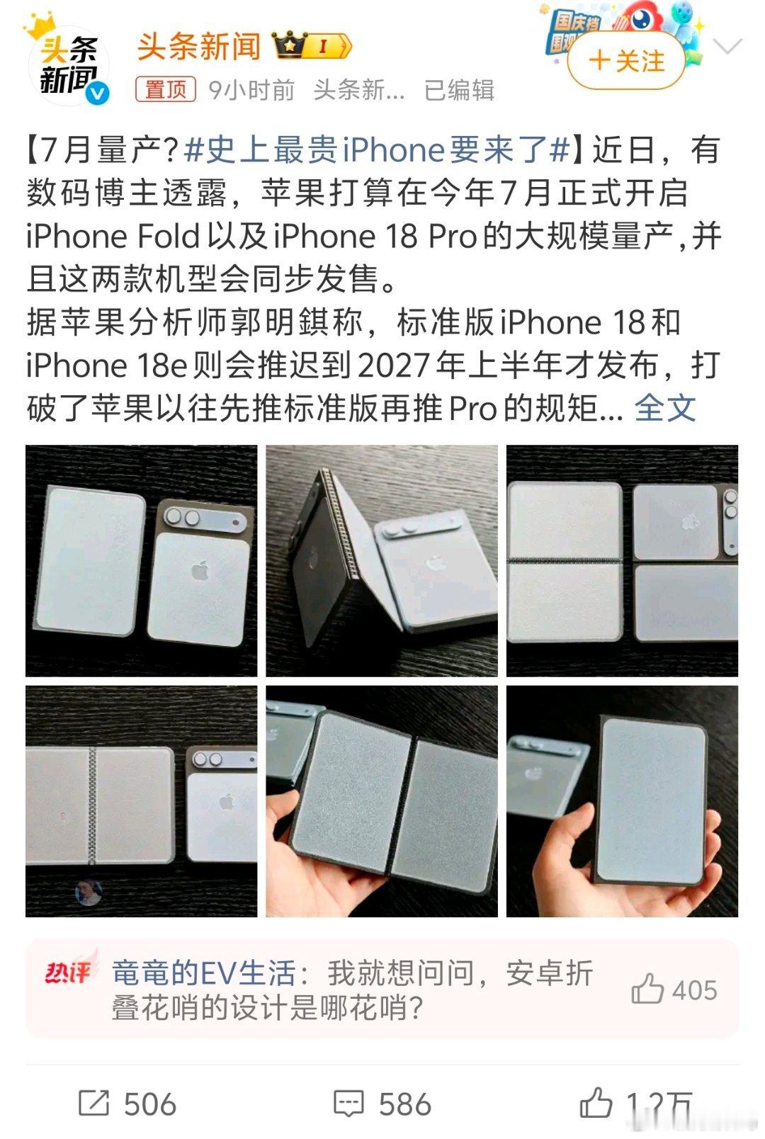 史上最贵iPhone要来了据爆料iPhone Fold和iPhone 18 Pro要同时上架了,我在想到时候fold定价到两万多的情况下,销量会变成什么样子呢,不知道会不会比pro卖的好。