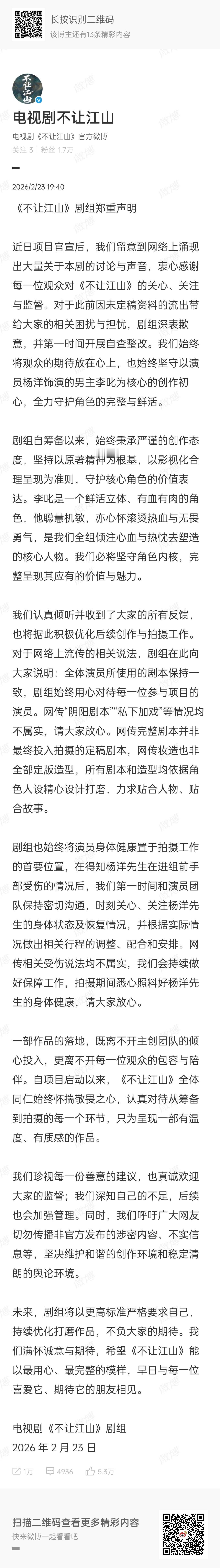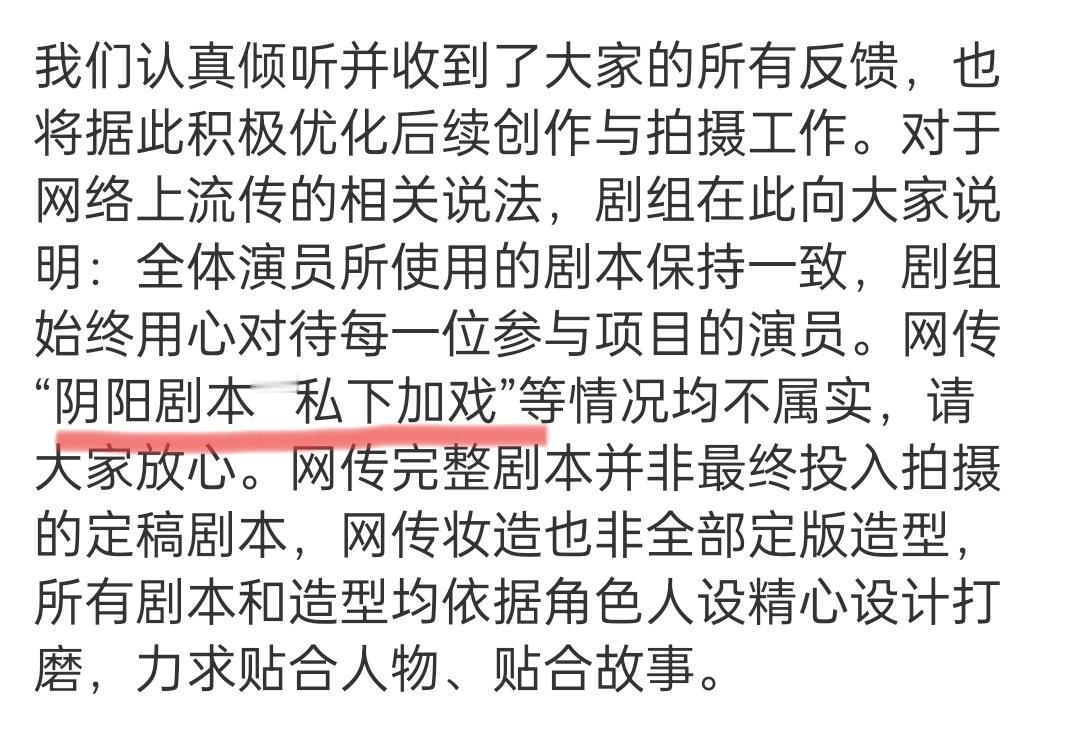 《不让江山》官博发声明,否认阴阳剧本,否认私下加戏,所以明星进组前就知道剧本长啥