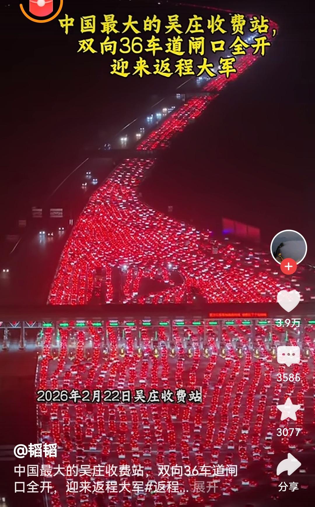 航拍中国最大高速收费站返程高峰这“流动星河”般的车流长龙,是最动人的返程图景!36个车道全开的高效保障,承载着万家团圆的余温与奔赴前程的梦想。每束车灯都照亮希望,愿归途平安,开工顺遂![烟花][烟花][烟花] 春节高速收费站 评论打卡任务