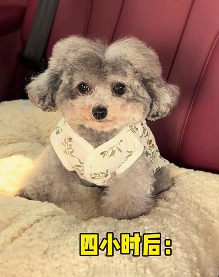 小狗坐十几个小时长途面相都变了这发型的转变真的笑死我了咋中分了