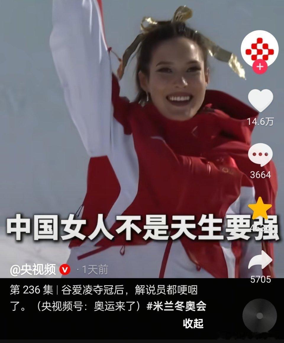 谷爱凌夺冠后,女解说这样说。“中国女人不是天生要强,我们是天生就很强”