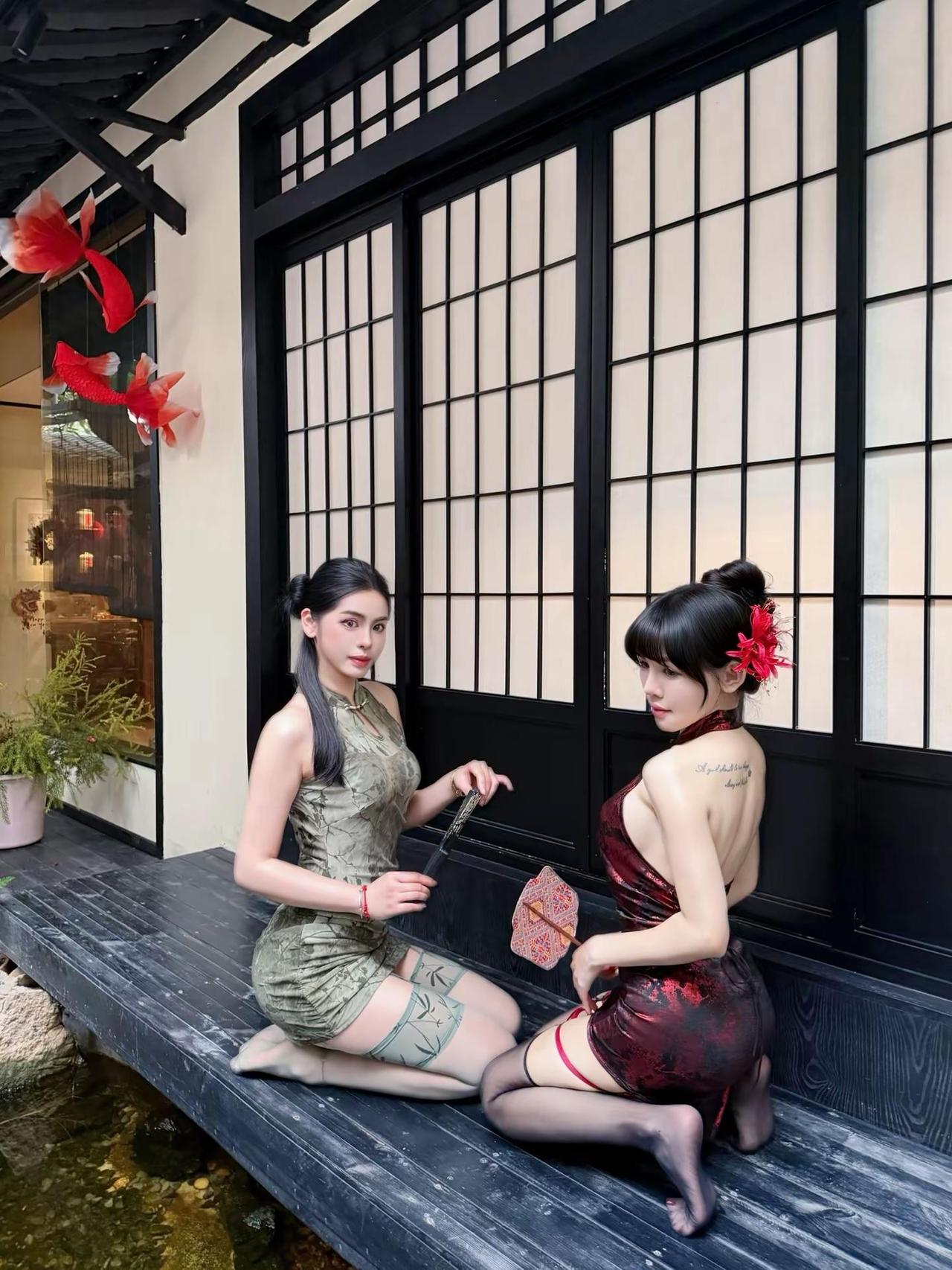 双生花闺蜜不愧是旗袍腿精氛围感