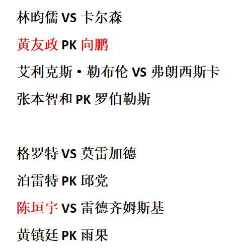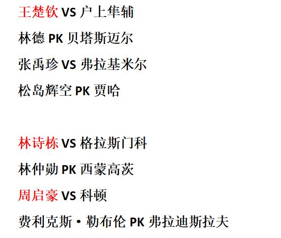 新加坡大满贯一夜男单32强全部落位! 国乒占六席,王楚钦对手确定! 北京时间2月23日,WTT新加坡大满贯单打首轮的角逐。 ①莫雷加德3-1赵胜敏。 比赛前程韩国选手赵胜敏发动不错,针对前三板是有充足准备,没有被对面带偏节奏,自己战术很好执行出来,11-8拔得头筹,随即次局又是展现极强韧性,顽强追赶,一度看到扩大优势的机会,可惜关键节点差之毫厘,此后就显得一泻千里。莫雷加德经受住考验,遭遇强力的冲击时能及冷静应对,渐渐找回自身舒适环节,走上正轨,打出擅长得分手段,这样连扳三局,以3比1逆转晋级次轮。 ②艾利克斯·勒布伦3-0冯翊新。 从始至终冯翊新未能展现太强的竞争力,前两局都输得较为干脆,完全没能有关键分博弈,绝境之下是放手一搏,本来手握局点看到保留悬念的希望,结果关键时刻动摇,机会溜走,最终0比3完败被淘汰。艾利克斯处理得游刃有余,一直处于自身范围,节奏把控松弛有度,后程遭遇反扑足够镇静,一鼓作气轻松突围。 ③弗朗西斯卡3-2冯耀恩。 比赛走势跌宕起伏,弗朗西斯卡从领先到被反超,遭冯耀恩逼入绝境,幸好自身经验丰富,再加上强大心态,没有慌乱,冷静解决问题,顽强拖入决胜局,凭借出色应对是成功晋级。 —————————————— 这一夜男单32强全部落位,国乒占六席,王楚钦次轮对阵日本的户上隼辅。