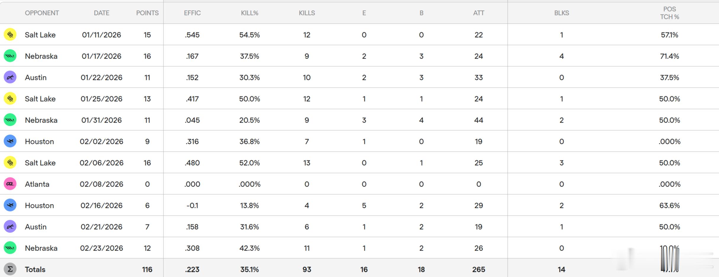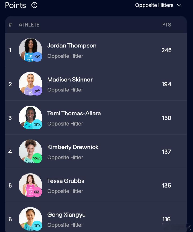 龚翔宇国际排坛动态龚翔宇目前在LOVB共得到116分,在所有接应球员中得分第6多具体数据10场比赛 116分 扣球265扣93中16失18被拦 9发14拦中国女排