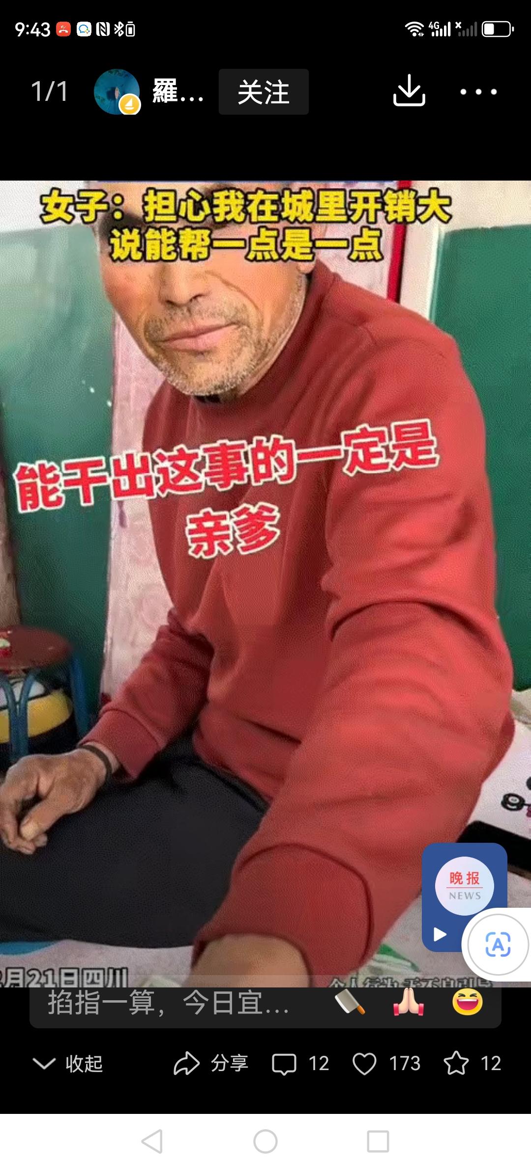春节假期刚结束,四川一位女子提着行李箱准备回城里上班,父亲突然从口袋里掏出一沓用橡皮筋捆着的钱,硬往她包里塞:"城里花钱地方多,爸妈能帮一点是一点,你拿着用。"她低头一看,父亲的头发又白了些,手里的钱新旧混着,有崭新的也有磨得起毛边的,眼泪一下子就忍不住掉下来了。 数了数这叠皱巴巴的钞票,一百元的大钞没几张,剩下的全是十块、五块的零钱,有的纸币边角都磨圆了,显然是攒了很久。这些钱是老父亲平日里省吃俭用、一分一分攒下来的辛苦钱,自己舍不得买烟买酒,连买菜都要货比三家,却把所有的爱都给了女儿。网友们看到这一幕都被戳中了:有位失去父亲的网友留言,说直到现在还记得生日时父亲塞给他的2000块零钱,那是父亲跑了好几趟银行换的整钱;更多人感叹,这哪是钱啊,分明是"从牙缝里抠出来的爱"。 最让人心里发酸的,是这钱的厚度——不是银行里那种捆得整整齐齐的百元钞,而是一沓带着毛边、被父亲数了好几遍的零钱。这些钱可能是父亲在菜市场卖菜时,别人多给的五块十块,他都小心翼翼地收进铁盒子里;也可能是他那件穿了三年的旧棉袄,明明袖口都磨破了还舍不得扔,省下的钱一张张叠好,就为了女儿城里生活能轻松点。父母的爱从来不是什么轰轰烈烈的大事,就藏在这些被体温焐热的皱巴巴零钱里。 你手机相册里,是不是还存着一张舍不得删的爸妈照片?可能是妈妈在厨房做饭时佝偻的背影,也可能是爸爸扛着锄头从田里回来时手上的老茧。这些藏在日常里的细节,才是我们这辈子最该好好珍藏的宝贝啊。要是很久没给家里打电话了,现在就拨个号码吧,听听他们的声音,比什么都重要呢。 -search.byteimg.com/img/labis/55465f49ed1a9924c232b8546ce0b559~480x480.JPEG