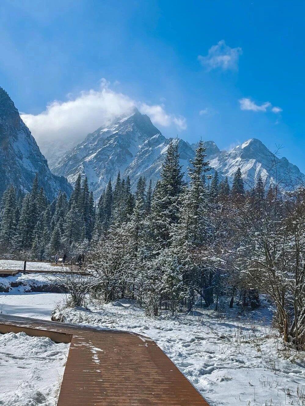 这里是静谧、纯净、被雪覆盖的原始仙境。少了人潮,多了份遗世独立的浪漫。西安出发高铁2h🌟解锁川北最纯净的冰雪梦境。 ✨亮点 ✅王朗:冬日变身广袤的林海雪原,徒步栈道仿佛通往神秘的雪国。 ✅古寨:扒昔加古寨的木屋覆盖着厚厚的白雪,屋内柴火噼啪,藏式火锅热气腾腾。 ✅天母湖:冬季的天母湖时常云雾缭绕,湖岸结着晶莹的冰凌,宛如一颗冰封的蓝宝石。 📸拍照出片指南 ✔️雪中森林:寻找雾凇树枝作为前景,拍摄森林栈道的纵深感,营造童话森林的氛围。 ✔️冰湖云雾:捕捉湖面晨雾与远山的层次,画面简洁清冷,富有中国山水画意境。 ✔️古寨烟火:拍摄古寨木屋屋顶的厚雪或记录当地人烤火的场景。 ⚠️旅行贴士 1,山区冬季寒冷,加厚羽绒服、帽子围巾手套、雪地靴或登山鞋。 2,冬季天气多变,可能因大雪临时封路,保持平和心态。 3,进入白马藏族人家或拍摄人物,请务必先礼貌征得同意。