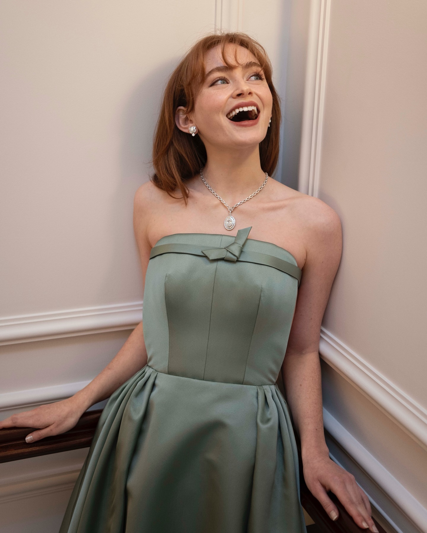 Sadie Sink出席第79届英国电影学院奖红毯身穿的绿色缎面露背长裙来自PRADA为她打造设计,完美呼应她的瞳孔色。而佩戴的珠宝则来自BVLGARI 高级珠宝系列,复古优雅中带着一丝甜美可人~