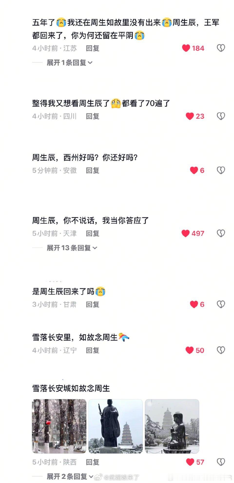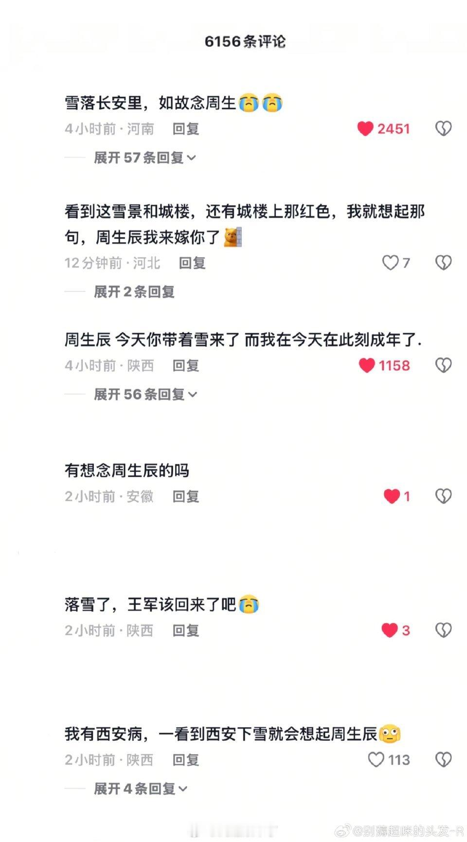 雪落长安里,如故念周生,今天西安下雪了,大家又想念白月光周生辰了。《周生如故》是