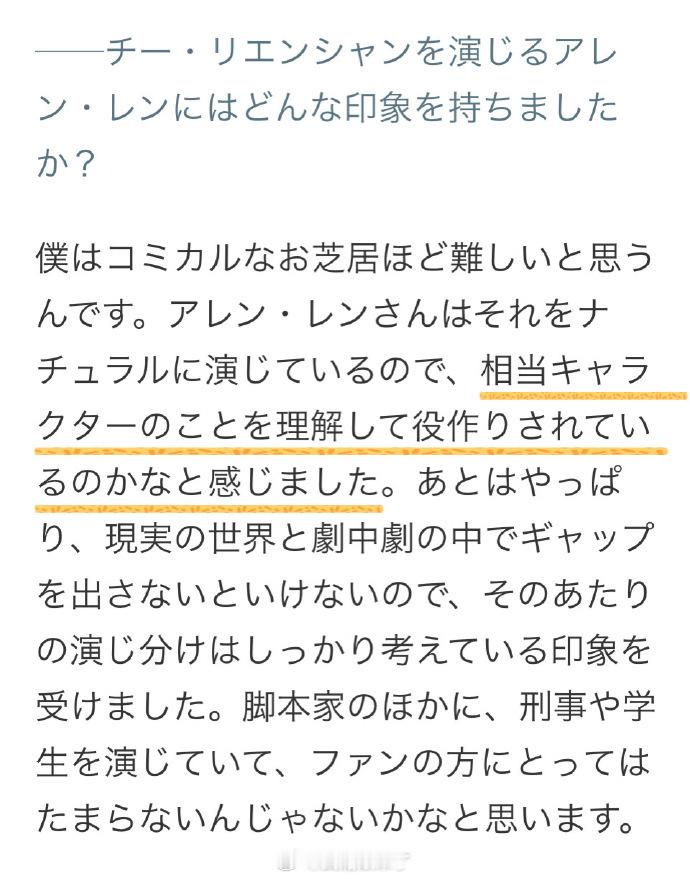 这是来自海外同行的认可,印证了祁连山这个角色的魅力是跨越国界的。