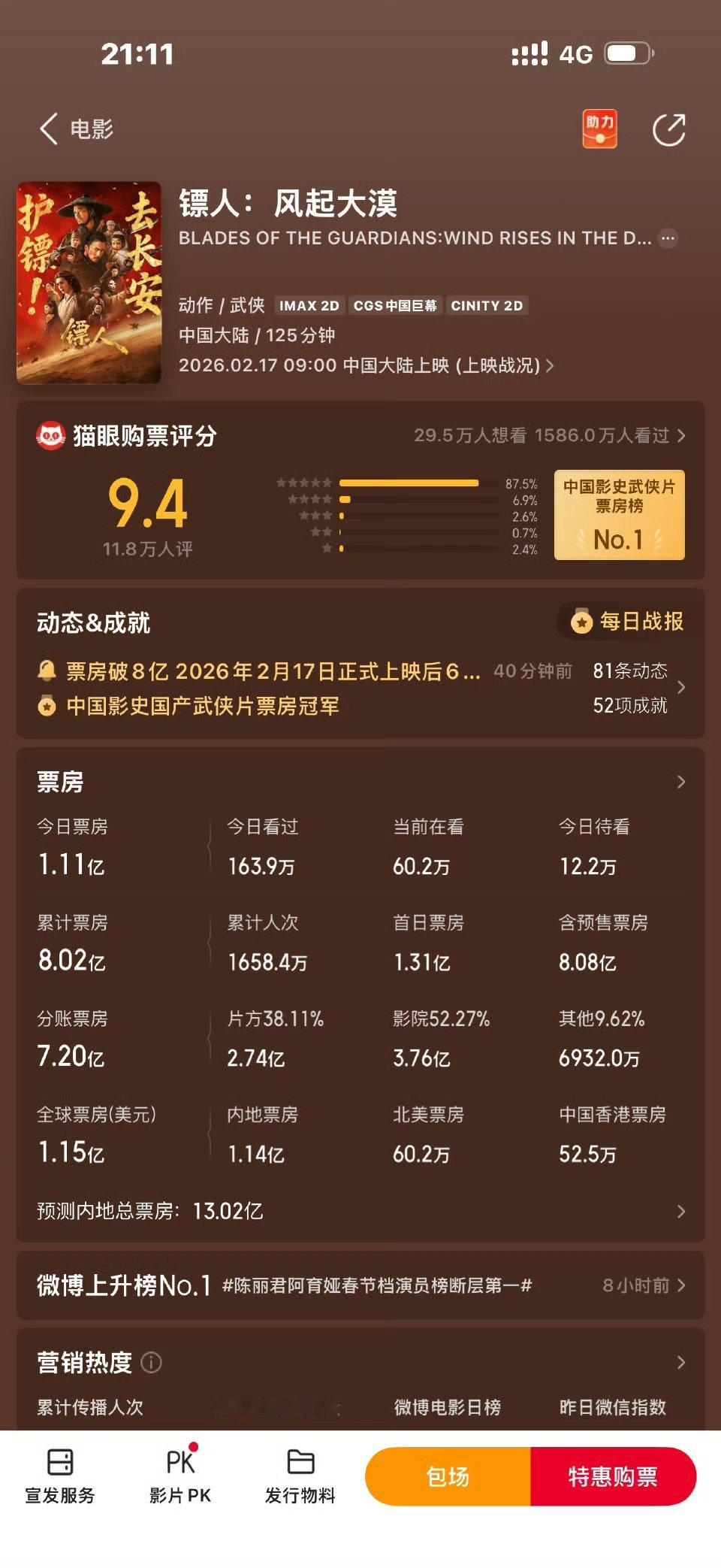 镖人:风起大漠》凭借硬核的口碑支撑,连续4天实现票房“逆跌”,单日票房不仅未随档期后半程下滑,反而持续攀升镖人票房