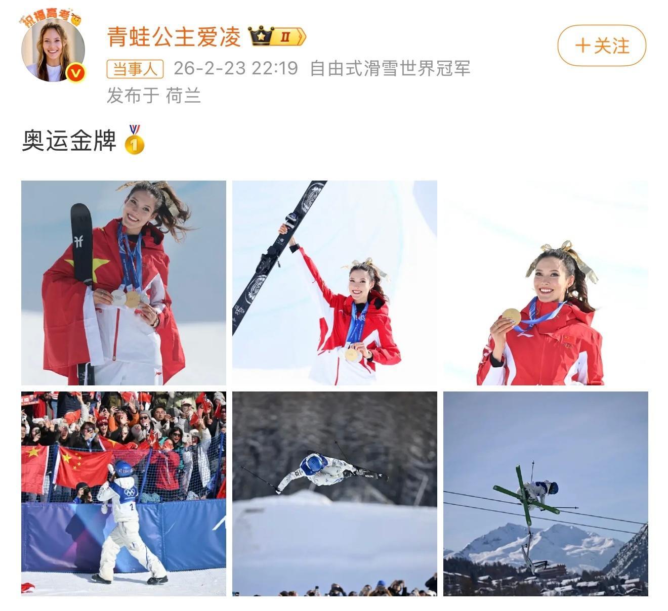 谷爱凌发博晒金牌“重力向下,而你向上”恭喜爱凌!