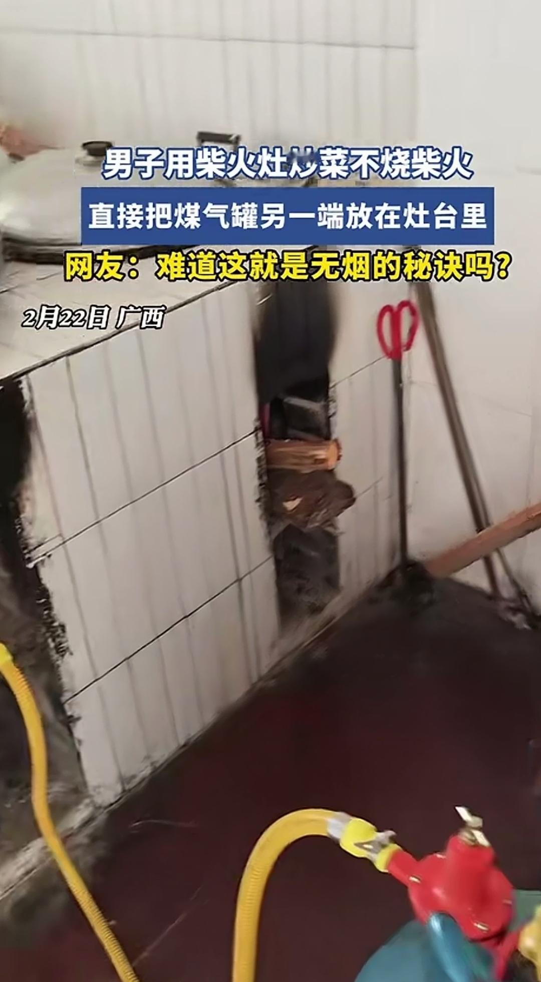 把烧液化气的猛火灶头放进土灶里做饭炒菜,这种土洋结合用大铁锅烹饪的方式着实不错。 它既保留了土灶焖烧的独特风味,又能更好地将油烟直接排到室外。说它是无烟且能烧出农家味的新式农家灶,一点也不为过。 不过,从画面中可以看出,这种猛火灶是从大灶面放进去的。毕竟用砖块砌成的土灶进柴口很窄,根本放不进去,从凸出部分灶面的大铁锅也能印证这一点。 综合这些因素,我不禁对这家人选择这种土洋结合的锅灶做饭的原因进行推测。有可能这家人长期在外,家里土灶上的铁锅生锈损坏了,也没有干柴可供燃烧,或许还觉得土灶炒菜速度慢。所以这次回家过年,他们便买来了能立即用于炒菜的铁锅、猛火灶、煤气罐等。 大家说,我的推测是不是到位? 改造猛火灶