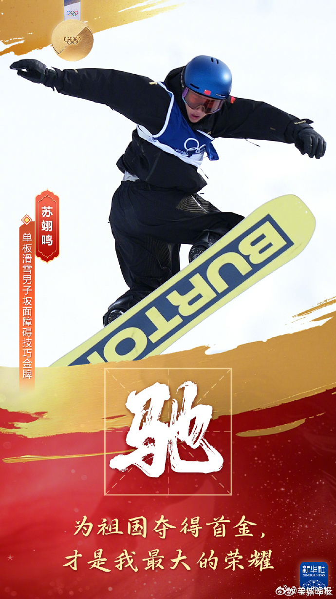 【“驰、骋、骠、骧、骁”,#5枚金牌配这5个字太燃了#!】 46年前,中国运动员首登冬奥舞台,他们最刻骨铭心的印象是:“差距、巨大的差距”。今天,、、、、谷爱凌等一大批中国名将屡屡在国际赛场劈金斩银,以前所未有的群像模式向世界展现着新时代中国青年大方鲜活、阳光洒脱的风采。戳↓我们用“驰、骋、骠、骧、骁”5个字,搭配中国代表团在本届冬奥会上获得的5枚金牌。戳更多>>#国际雪联致敬谷爱凌##孙颖莎首秀打得好精彩##王楚钦不好意思白纸我签不了##致冬奥会中国体育代表团的贺电##孙颖莎vs帕拉南#(新华社)(编辑:杨雨桐;审签:艾渝)