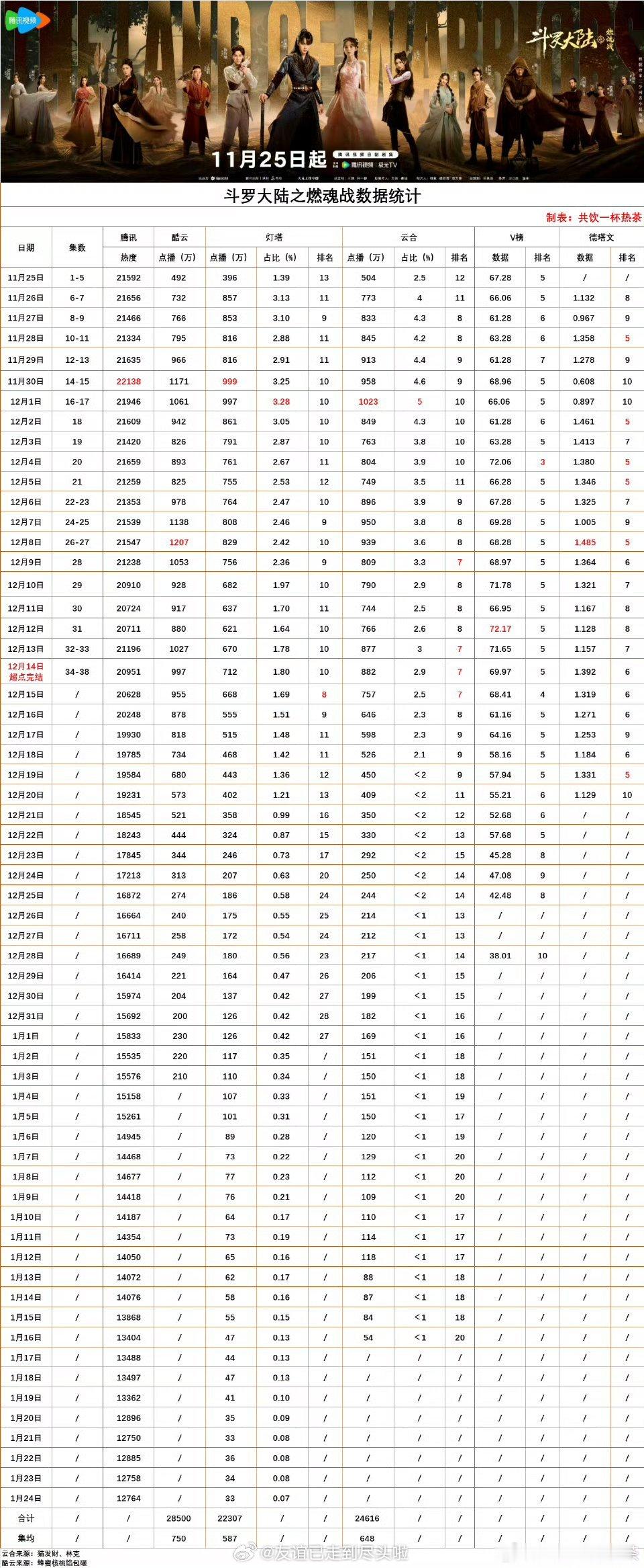 《江湖夜雨十年灯》首播双平台云合605w《十二封信》热播期集均914.6w《焕羽》热播期集均774w《斗罗大陆2》热播期集均648w 江湖夜雨十年灯 江湖夜雨十年灯 剪辑