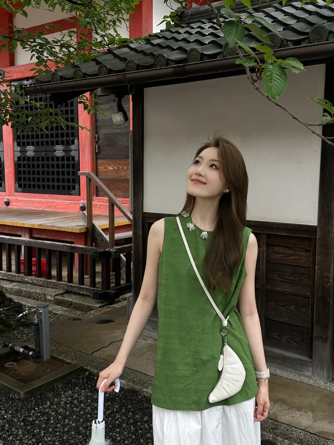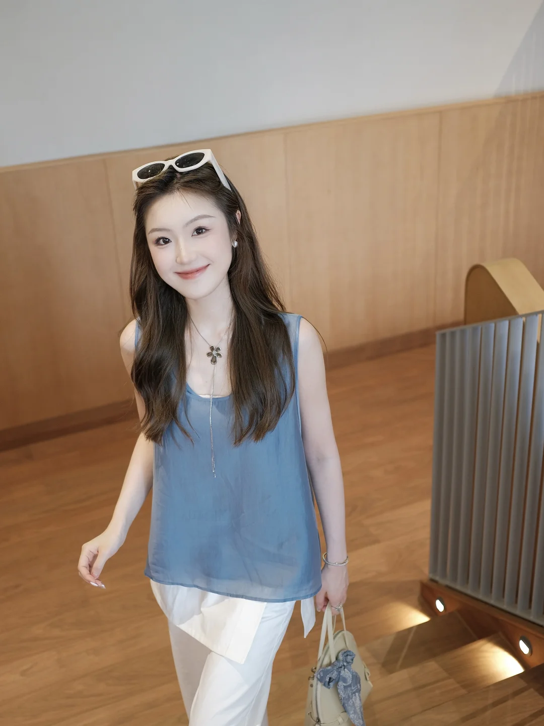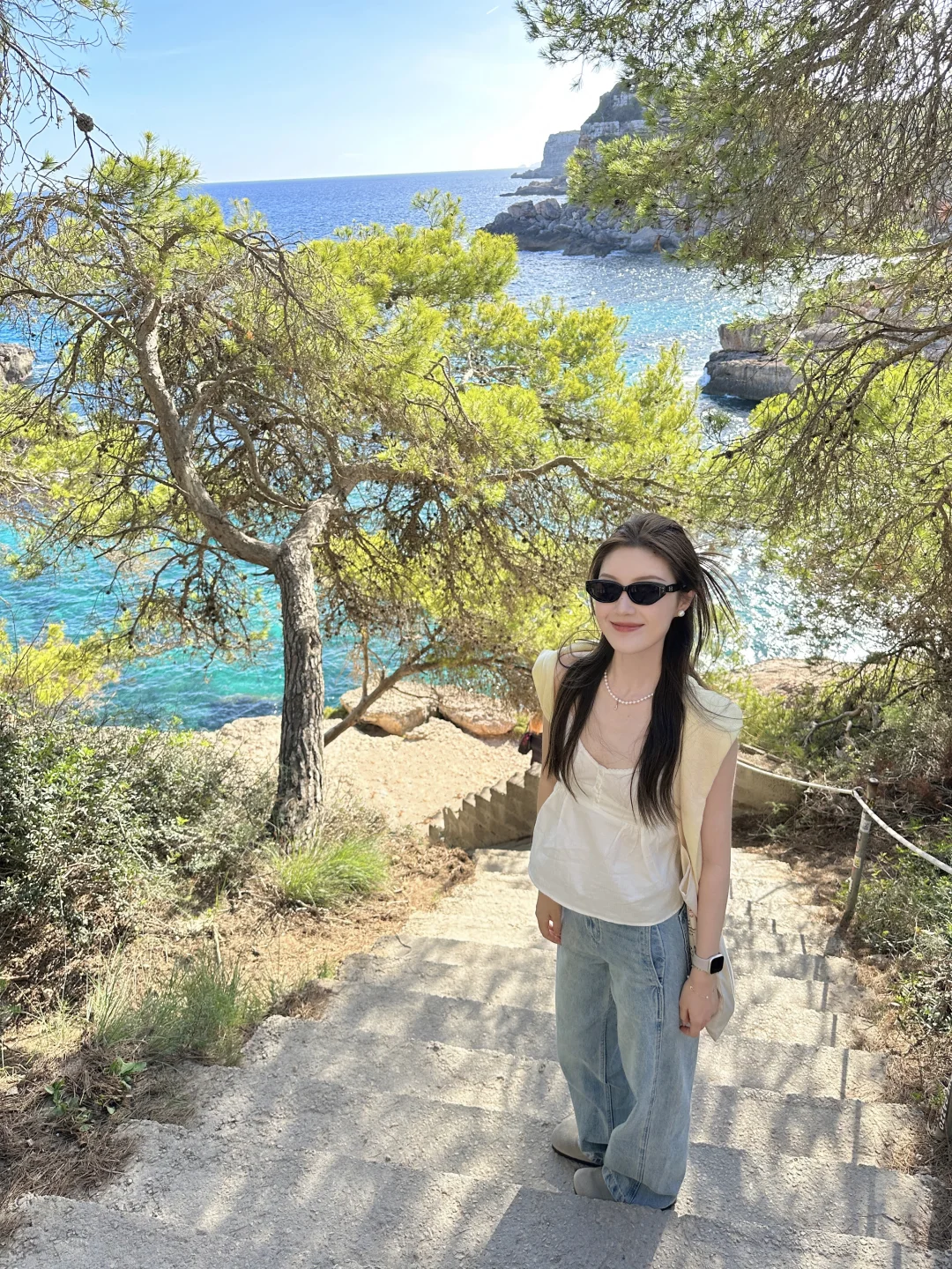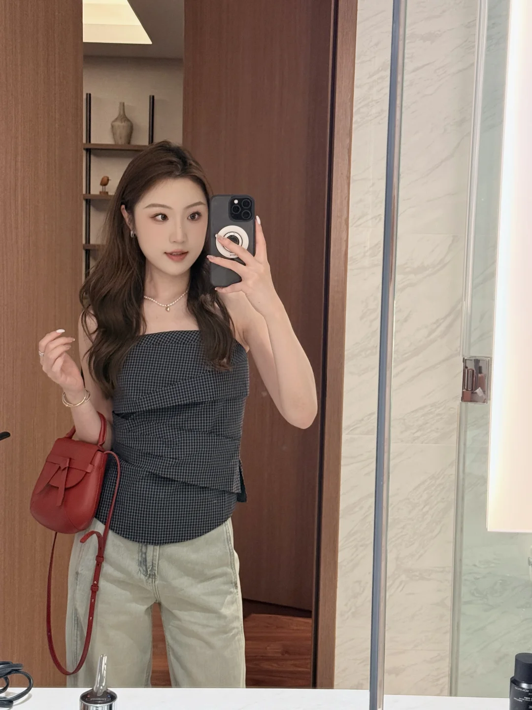 春日微喇牛仔裤穿搭,绝了!简约精致又时髦。白色荷叶边背心,配复古微喇牛仔