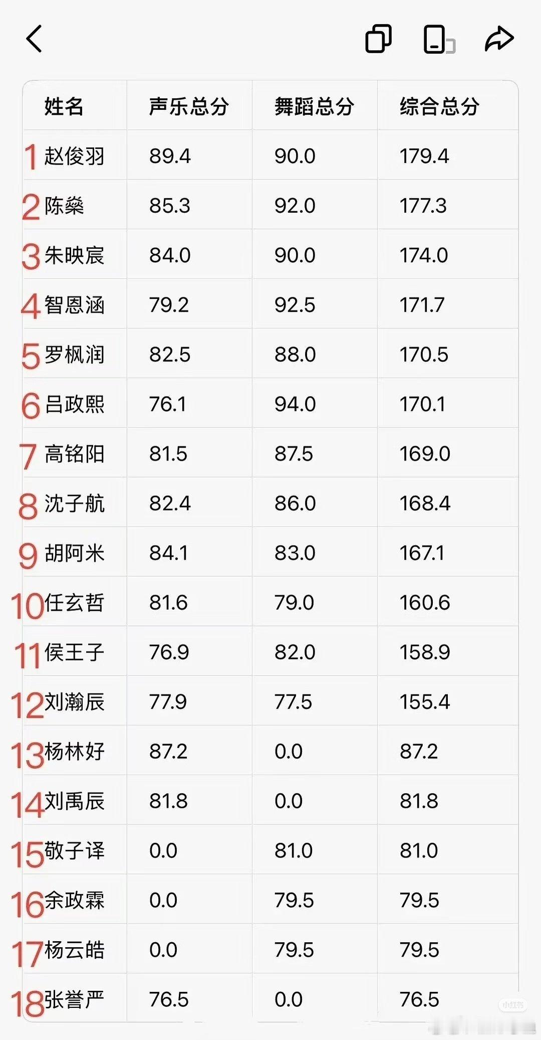 总分☝️ 声乐☝️舞蹈0⃣️基础上楼第4⃣️名赵俊羽 五代第一且唯一主唱实至名归🏅